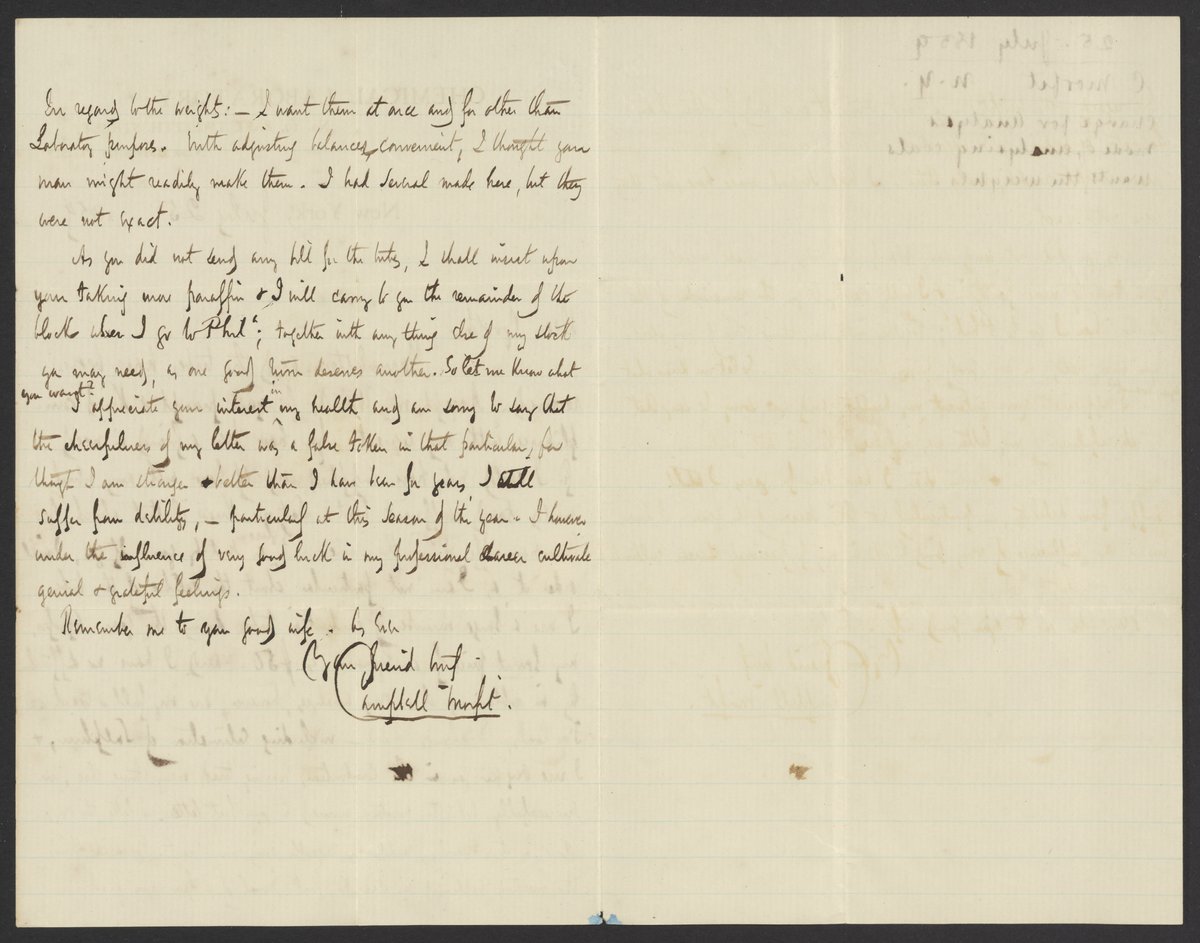 Small JPG1200 x 1826px — 307 KBFull-sized JPG2193 x 3337px — 782 KBOriginal fileTIFF — 2193 x 3337px — 21.0 MBCampbell Morfit (1820-1897), a distinguished chemist from the United States, co-editor with James Curtis Booth (1810-1888) of the Encyclopedia of Chemistry (1850), writes to thank Booth for the combustion tubes.