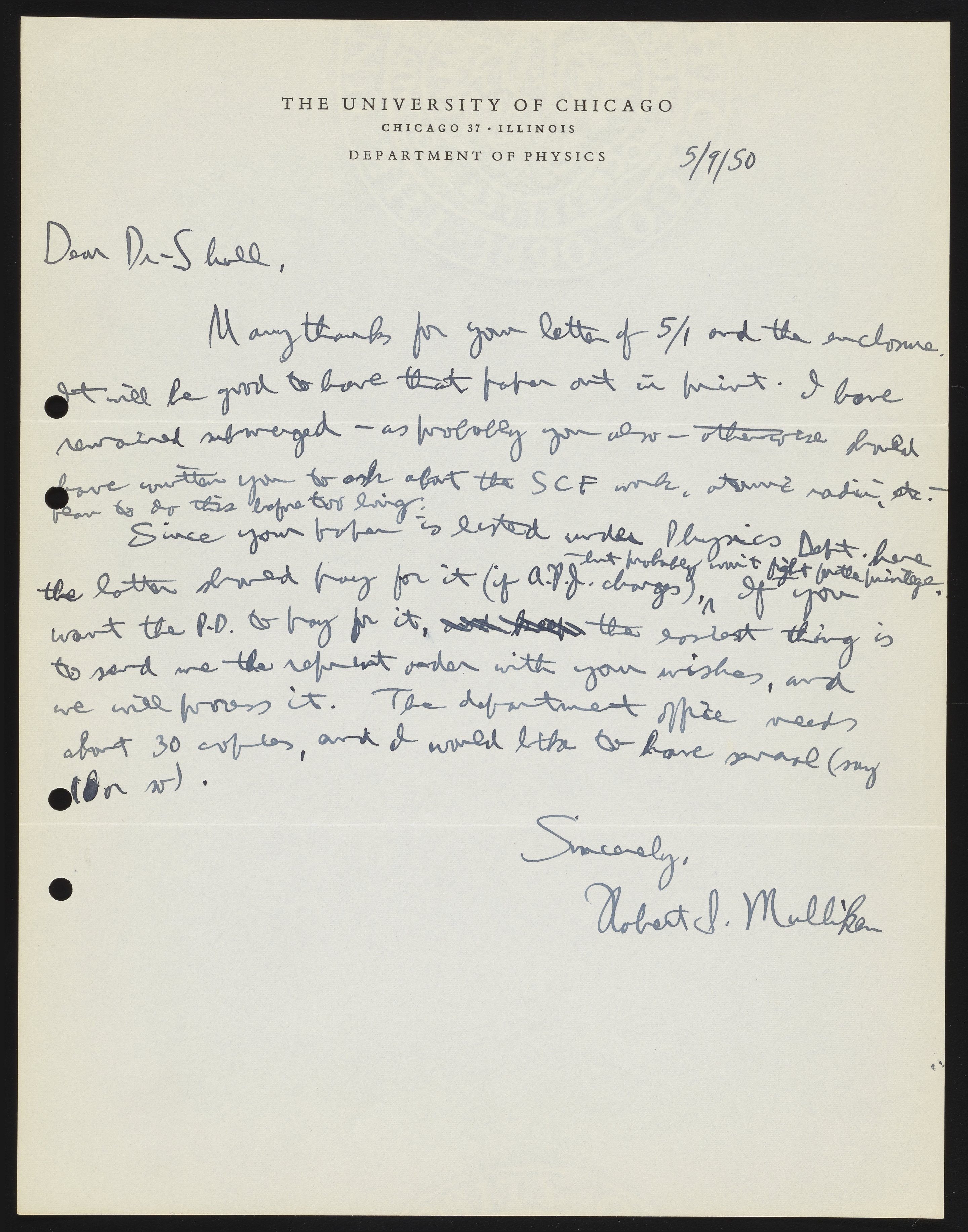 Letter from Robert S. Mulliken to Harrison Shull, 1950