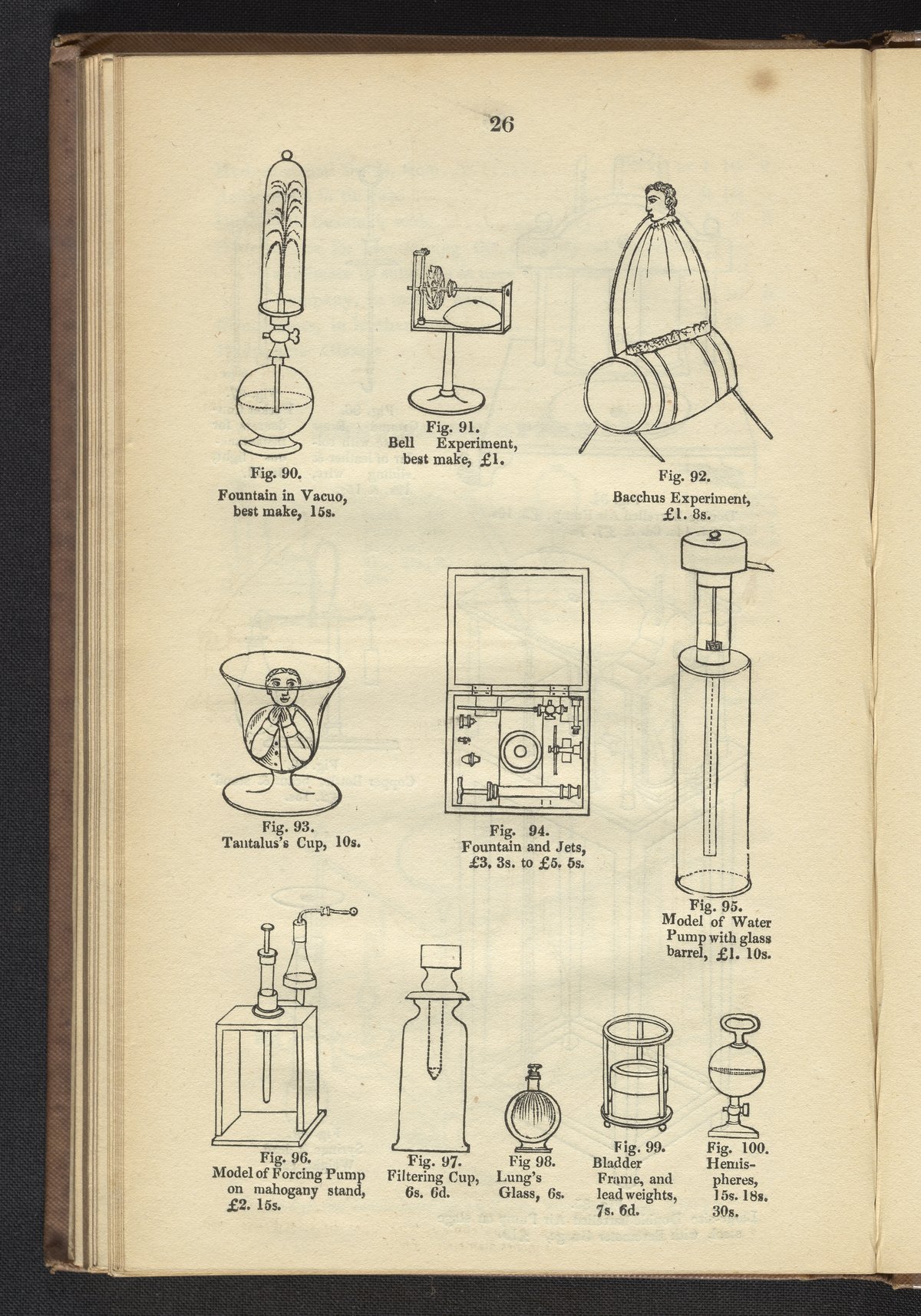 Palmer, Edward. “Figures 90-100. Pneumatic Apparatus.” In Palmer's New Catalogue, with Three Hundred Engravings of Apparatus, Illustrative of Chemistry, Pneumatics, Frictional and Voltaic Electricity, Electro Magnetism, Optics, &c. London, England: William Gilbert, 1840. https://digital.sciencehistory.org/works/msg02t0.