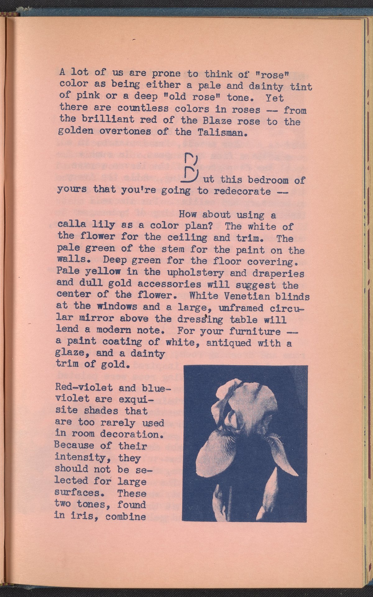 National Paint, Varnish. “Color Schemes From Flowers.” Pamphlets Corresponding to Radio Shows Produced by the National Paint, Varnish and Lacquer Association. Washington (D.C.), 1940–1949. TP935 .K46. Science History Institute. Philadelphia. https://digital.sciencehistory.org/works/mssz5wz.