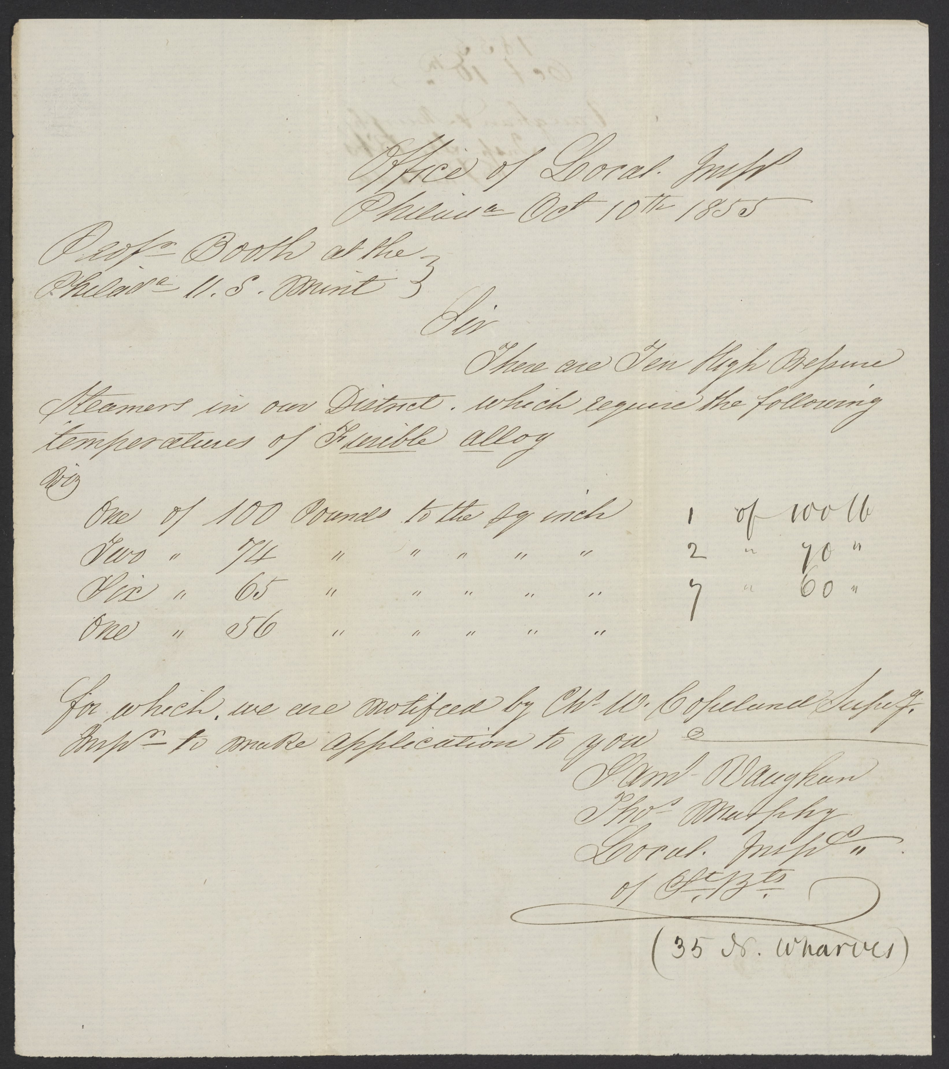 Letter from Vaughan Murphy to James Curtis Booth, October 10, 1855