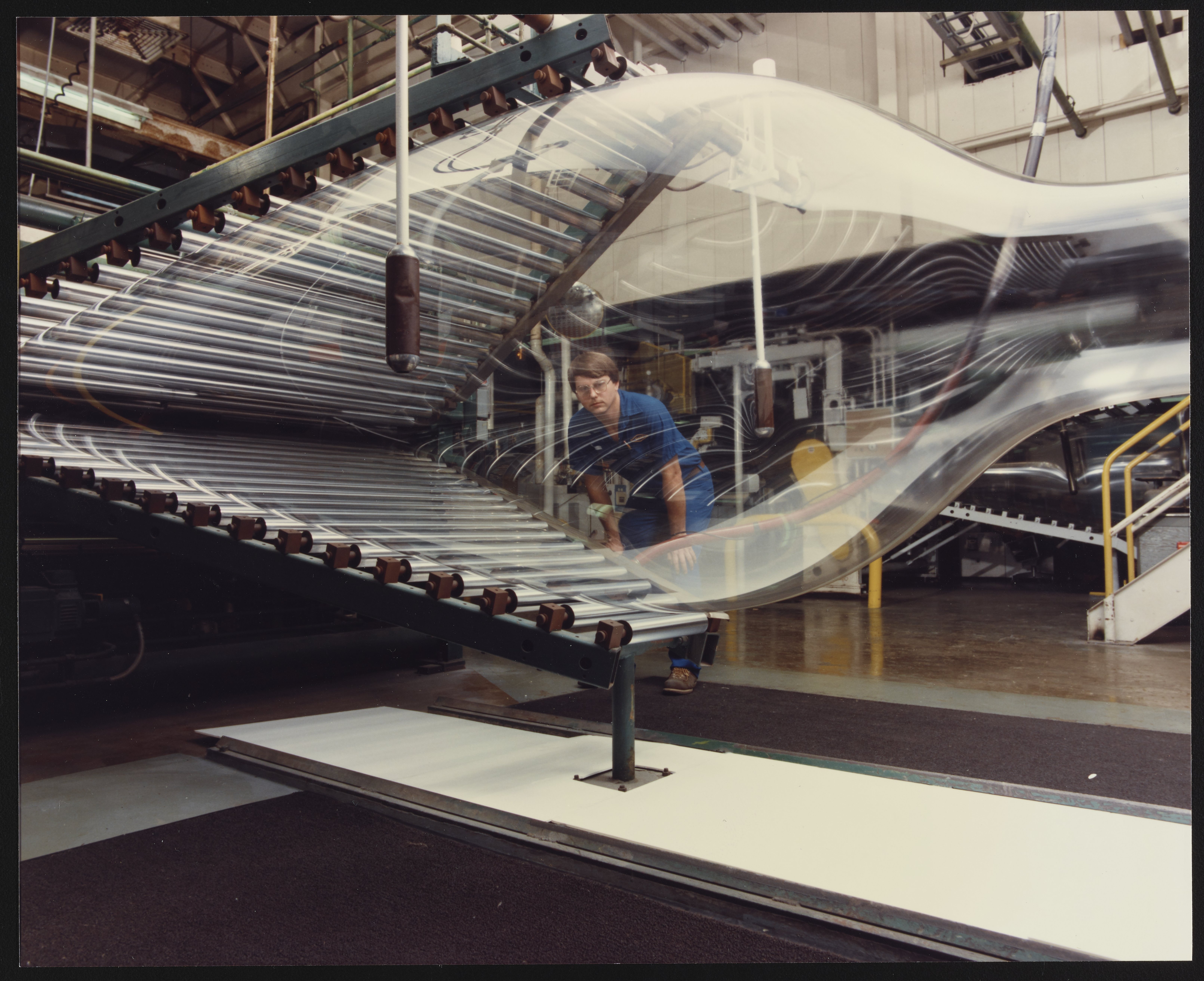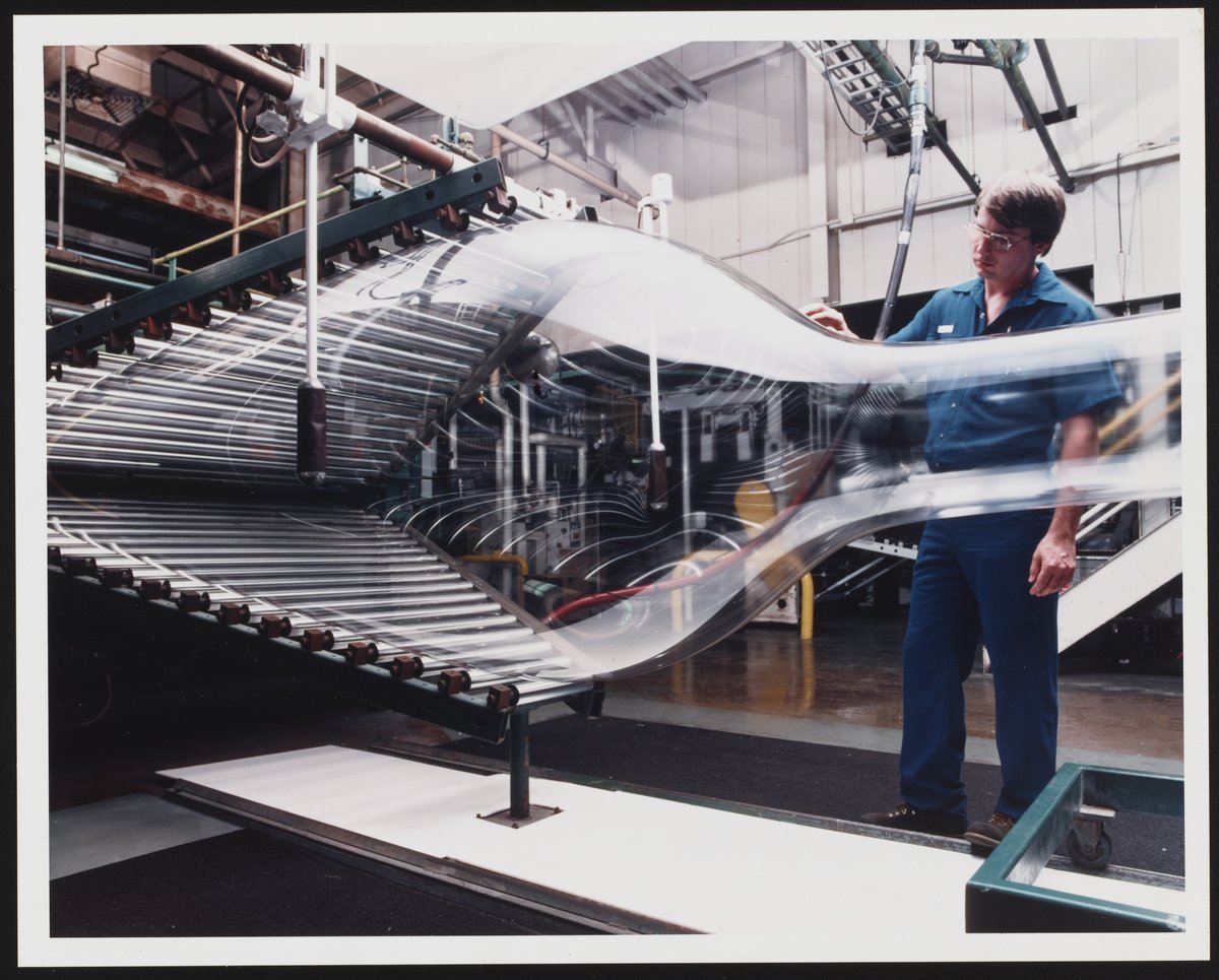 Dow Chemical Company. “Extrusion of Saran Bubble at Dow Chemical Company,” 1987–1988. Dow Chemical Company Historical Image Collection, Box 10, Folder Plants--Saran Bubble. Science History Institute. Philadelphia. https://digital.sciencehistory.org/works/mw22v622g.