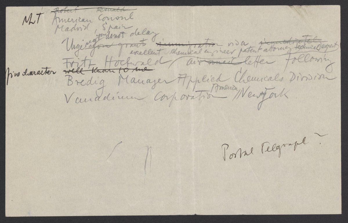 Bredig, Max Albert. “Draft of a Telegram from Max Bredig,” 1941–1943. Papers of Georg and Max Bredig, Box 7, Folder 26. Science History Institute. Philadelphia. https://digital.sciencehistory.org/works/mzlgyb6.