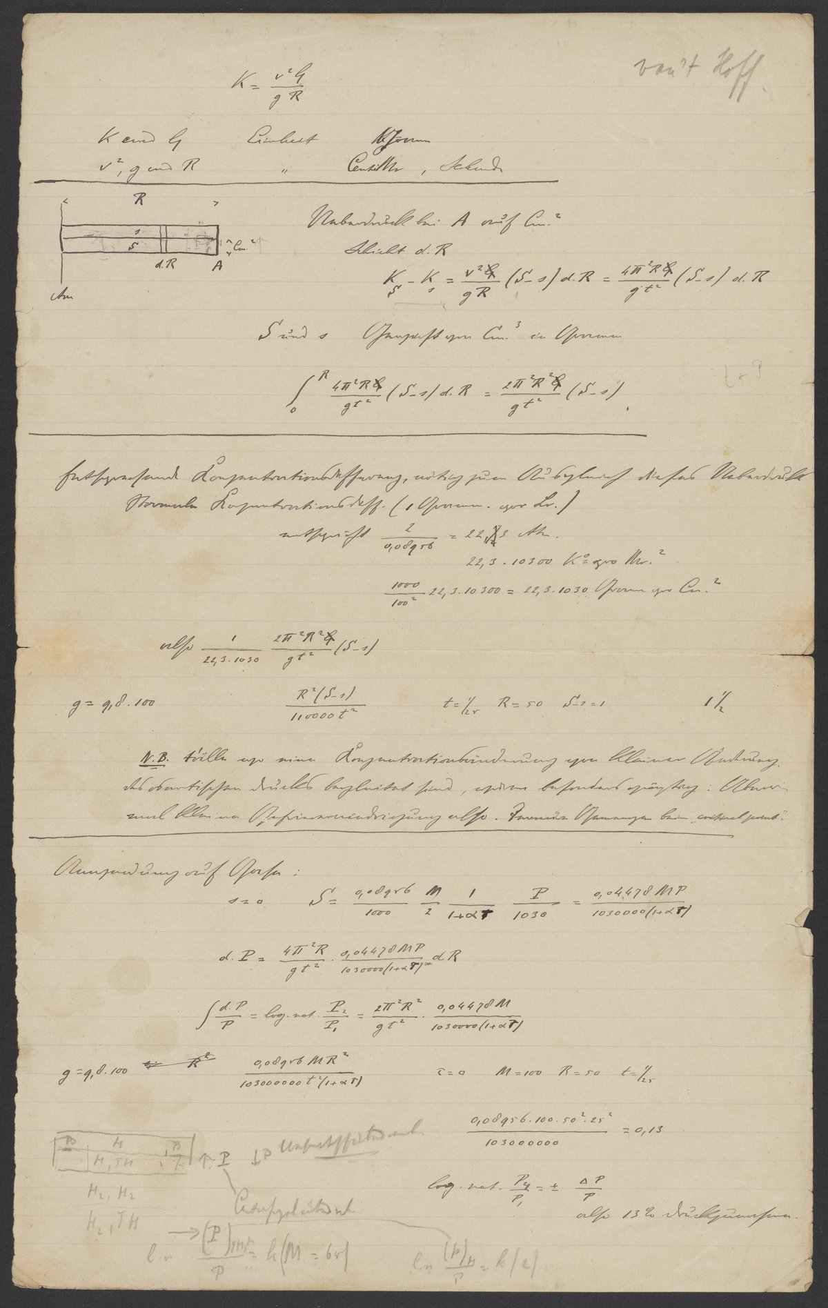 Small JPG1200 x 1881px — 339 KBLarge JPG2880 x 4515px — 1.7 MBFull-sized JPG5302 x 8312px — 5.0 MBOriginal fileTIFF — 5302 x 8312px — 126 MBNotes handwritten by Dutch physical chemist, Jacobus H. van’t Hoff (1852-1911). Van’t Hoff was the first winner of the Nobel Prize in chemistry in 1911 and is considered to be one of the lead pioneers of the field of physical chemistry.