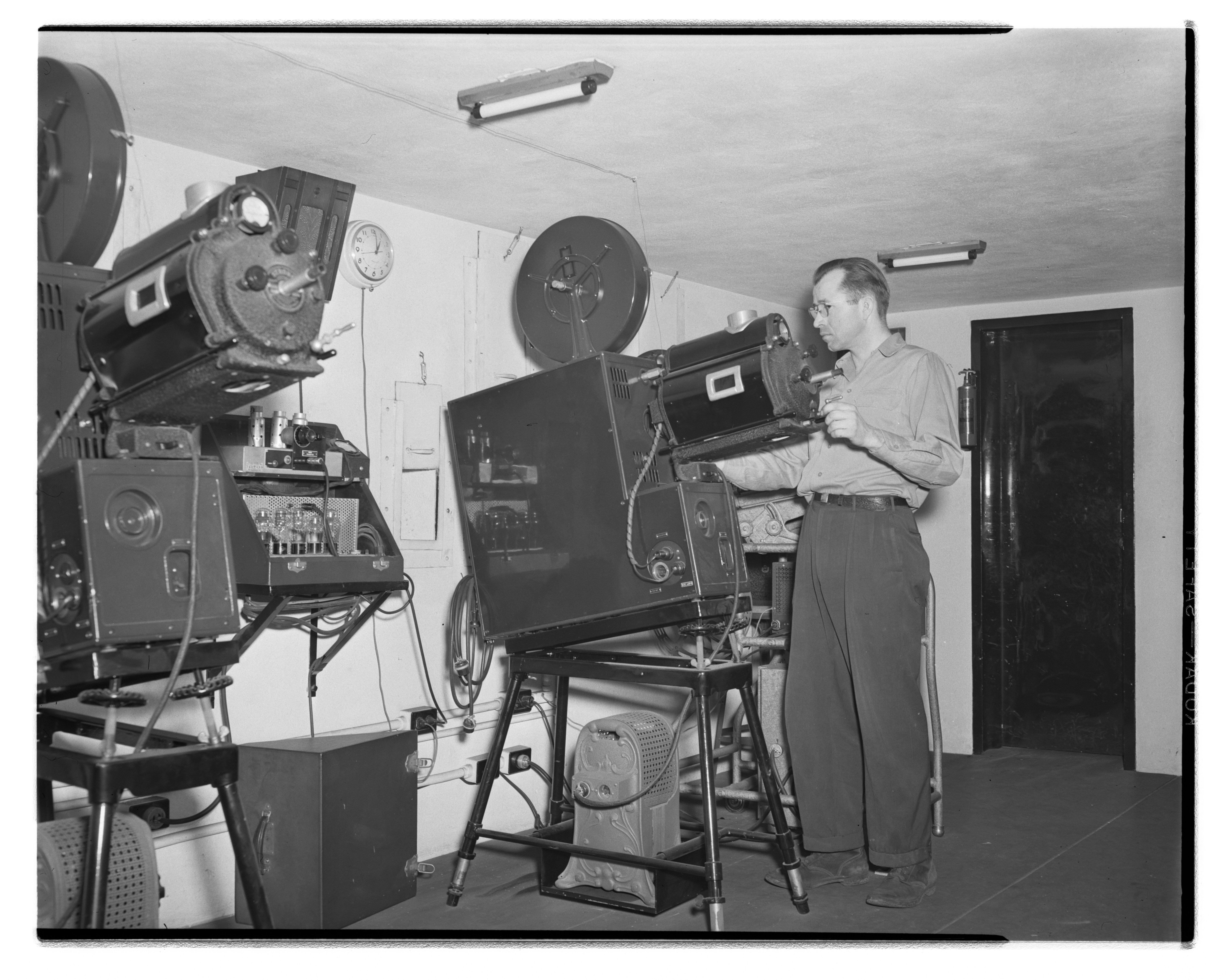 Dow Chemical Company. “Film Projector at Dow Chemical Company Plant,” February 24, 1948. Dow Chemical Company Historical Image Collection, Box 6, Folder Plants--Instrument Department. Science History Institute. Philadelphia. https://digital.sciencehistory.org/works/n583xv51j.