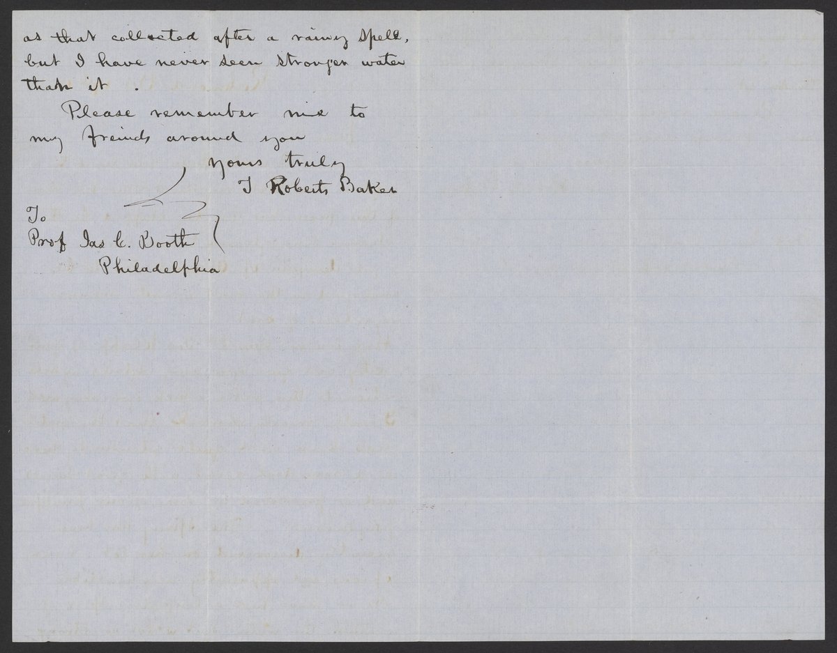 Baker, T. Roberts. “Letter from T. Roberts Baker to James C. Booth, October 19, 1853,” October 19, 1853. Papers of James Curtis Booth, Box 1, Folder 6. Science History Institute. Philadelphia. https://digital.sciencehistory.org/works/n78s1gp.