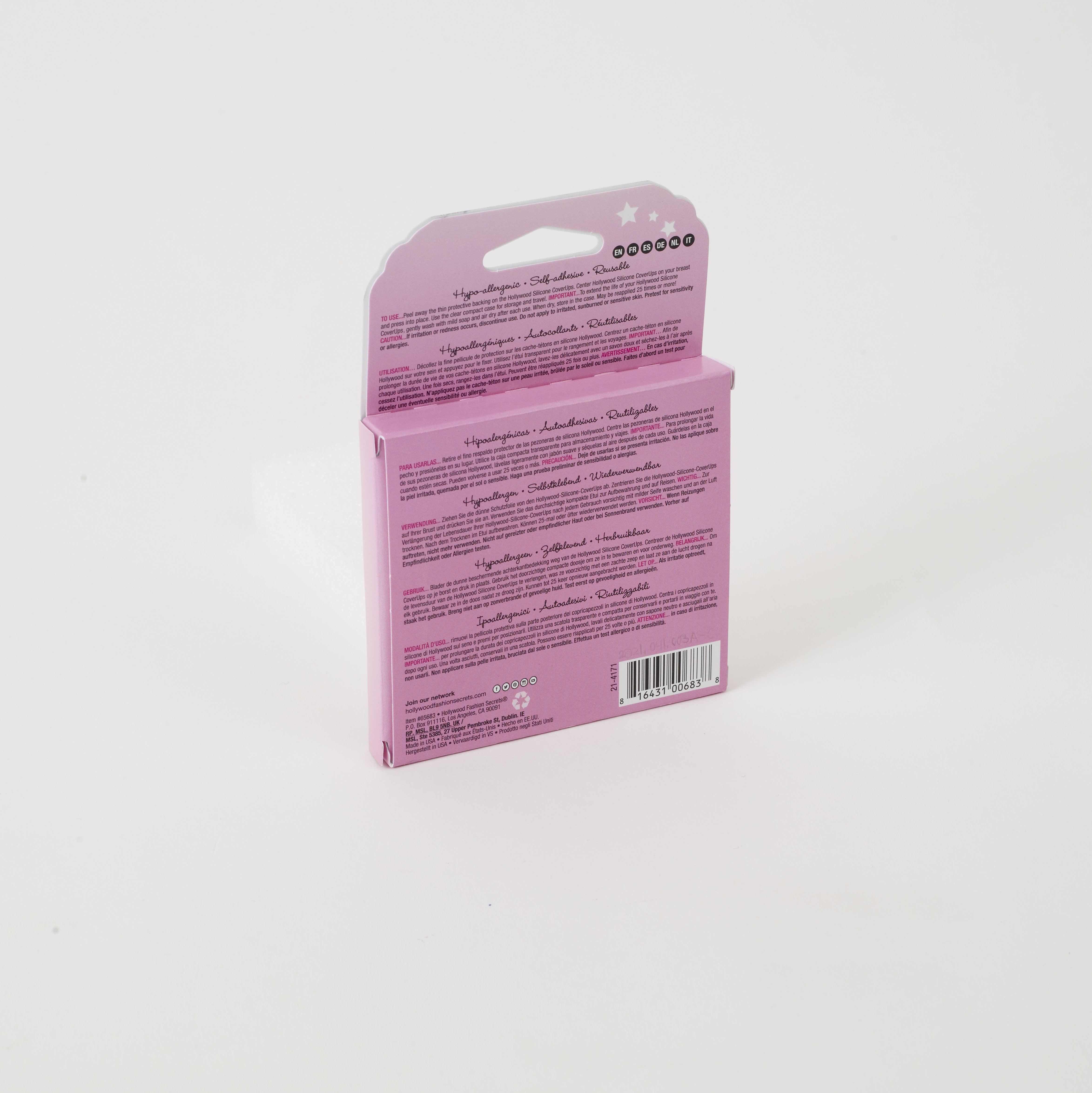 Small JPG1200 x 1202px — 96.3 KBLarge JPG2880 x 2884px — 509 KBFull-sized JPG4689 x 4696px — 1.4 MBOriginal fileTIFF — 4689 x 4696px — 63.1 MBThree varieties of circular cover-up pasties for skin tones "dark," "deep," and "light" produced by the Hollywood Fashion Secrets Company. Each product is encased in pink cardboard packaging with a clear plastic window. Two pasties are size 1 and the other is size 2.