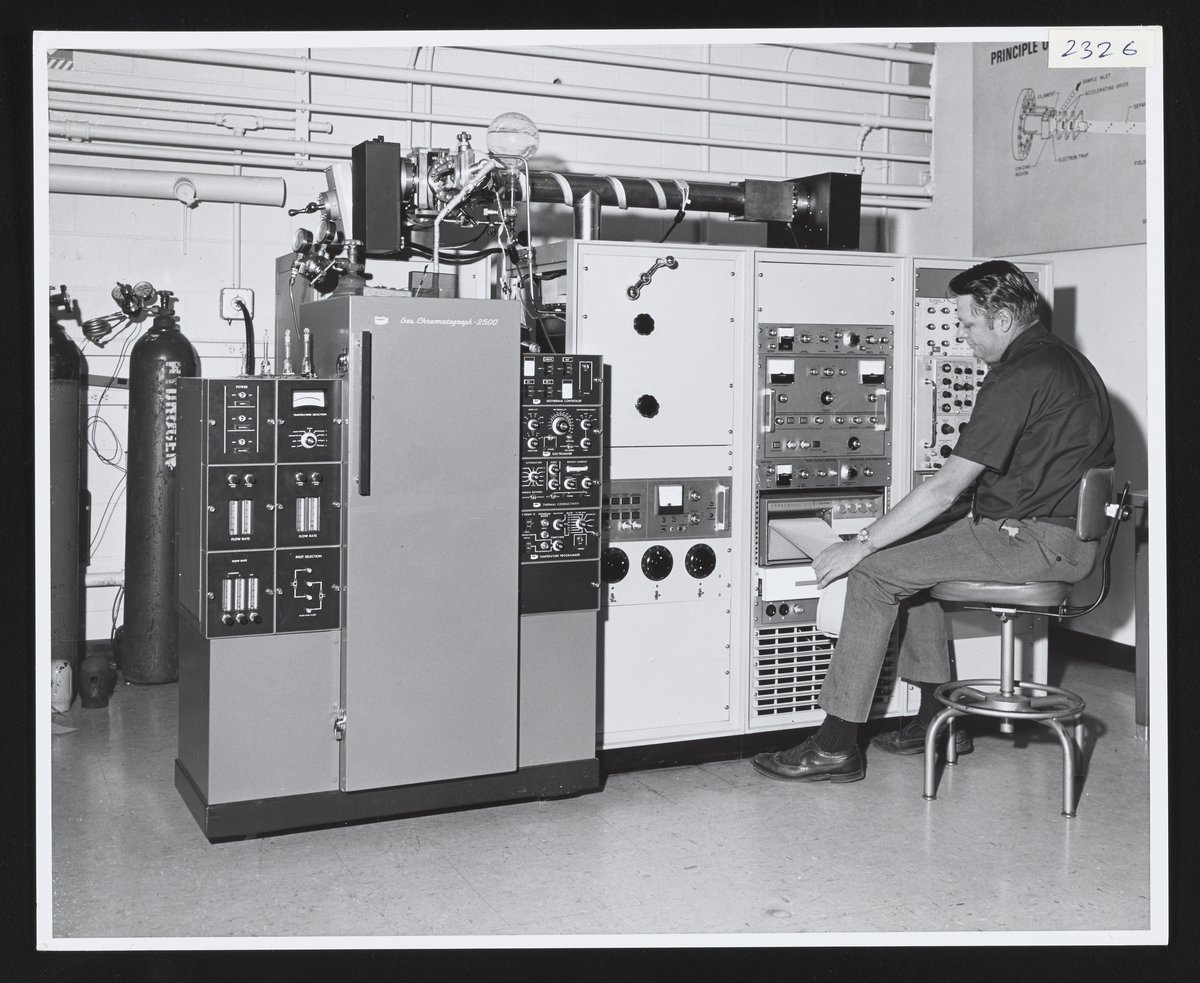 Small JPG1200 x 983px — 203 KBLarge JPG2880 x 2360px — 922 KBFull-sized JPG4378 x 3588px — 1.8 MBOriginal fileTIFF — 4378 x 3588px — 45.0 MBSeries of photographs depicting the Bendix Corporation Gas Chromatograph 2500 and Time-of-Flight Mass Spectrometer with a male technician. Assorted control panels are visible in the photograph, including an isothermal controller, electrometer, and temperature programmer. The Time-of-Flight Mass Spectrometer (TOFMS) was the flagship analytical instrument of the Bendix Corporation.