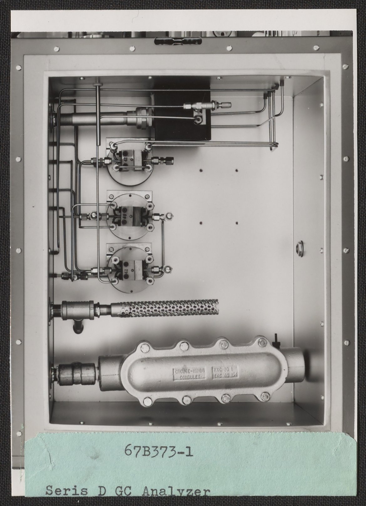 Beckman Instruments Photographic Services Section. “Beckman Gas Chromatograph, Series D Analyzer, with Open Case,” 1967. Beckman Historical Collection, Box 84. Science History Institute. Philadelphia. https://digital.sciencehistory.org/works/n870zr04d.