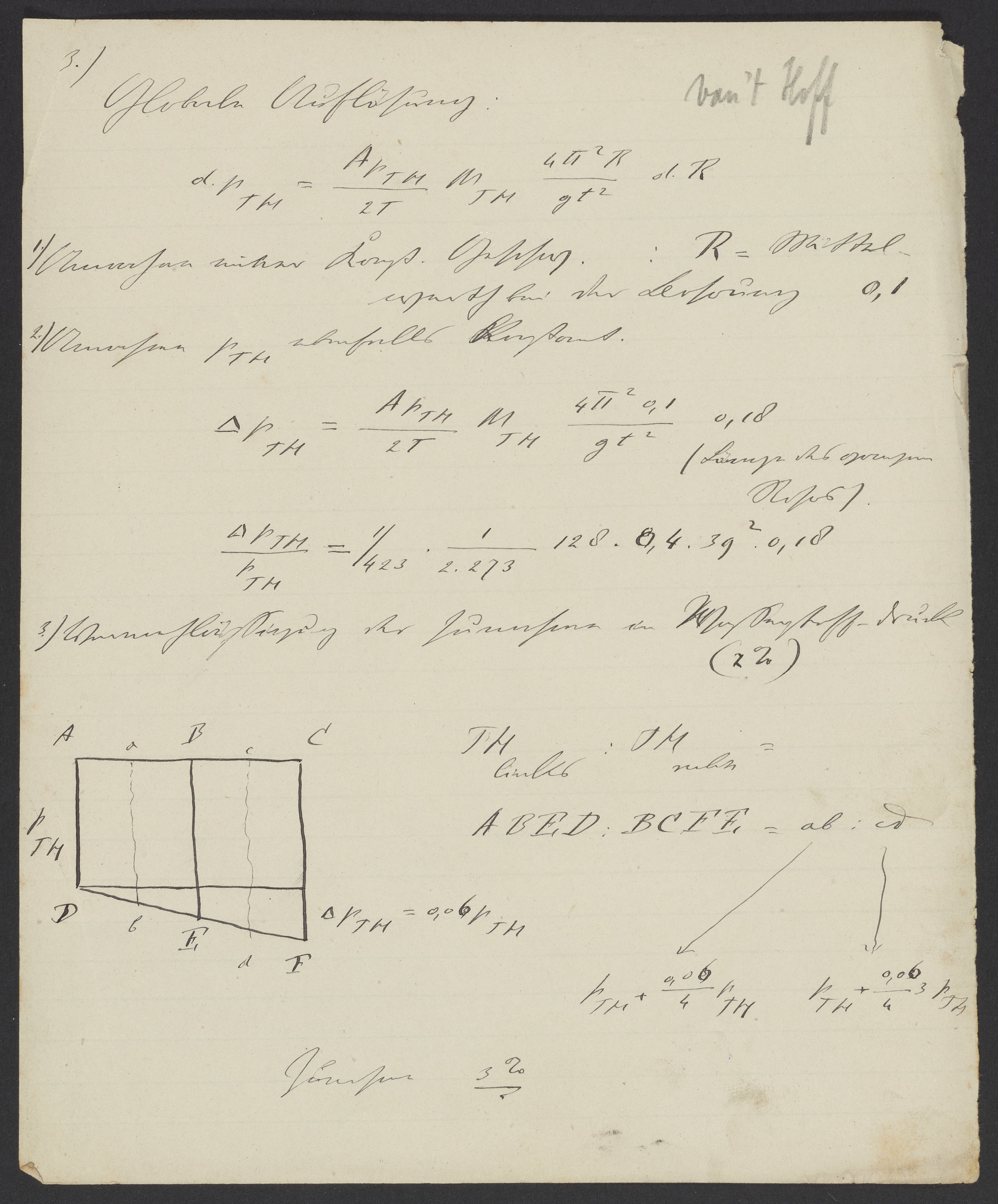 Small JPG1200 x 1448px — 203 KBLarge JPG2880 x 3475px — 1.1 MBFull-sized JPG4210 x 5080px — 2.3 MBOriginal fileTIFF — 4210 x 5080px — 61.3 MBNotes handwritten by Dutch physical chemist, Jacobus H. van’t Hoff (1852-1911). Van’t Hoff was the first winner of the Nobel Prize in chemistry in 1911 and is considered to be one of the lead pioneers of the field of physical chemistry.