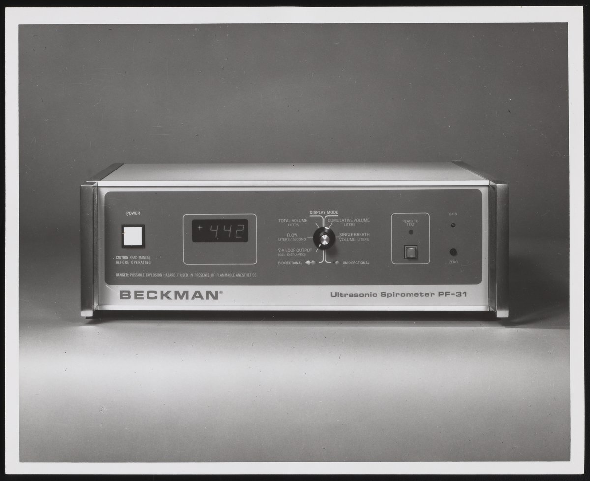 “Beckman PF-31 Ultrasonic Spirometer,” n.d. Beckman Historical Collection, Box 81. Science History Institute. Philadelphia. https://digital.sciencehistory.org/works/nc580m77c.