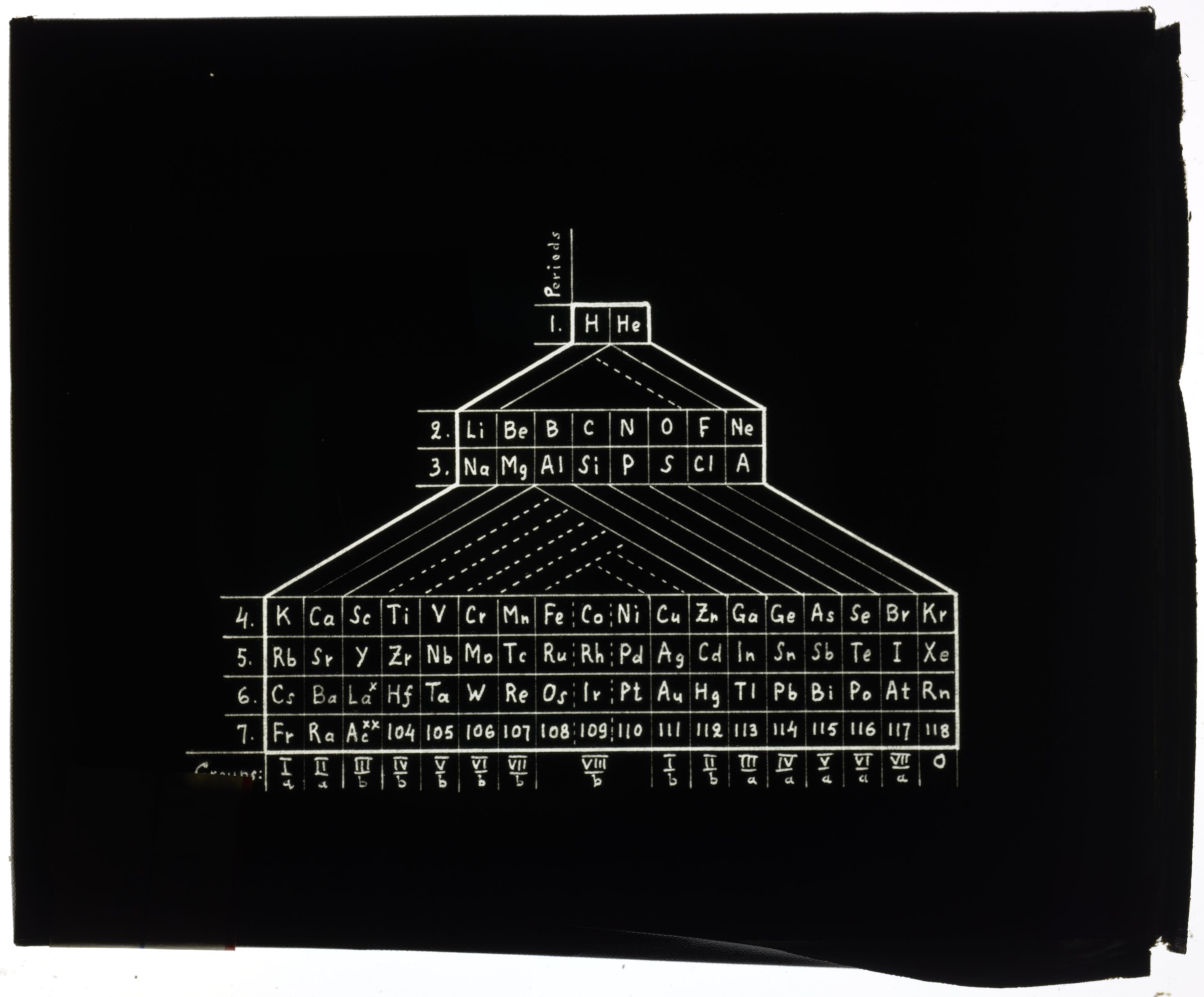 Left-step series table with elements arranged according to their valences1955 (Original design), Circa 1957 (Date attributed to slide)
