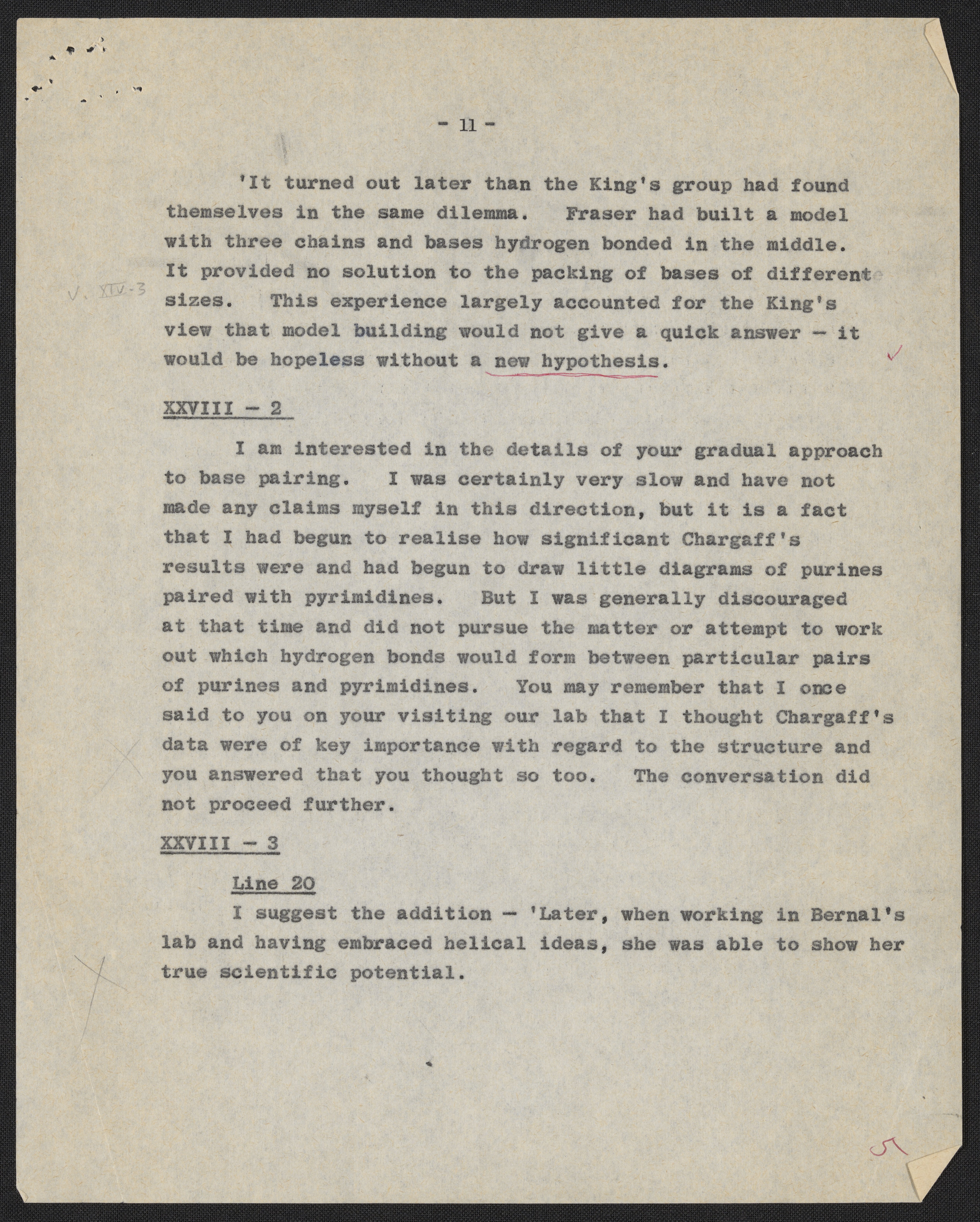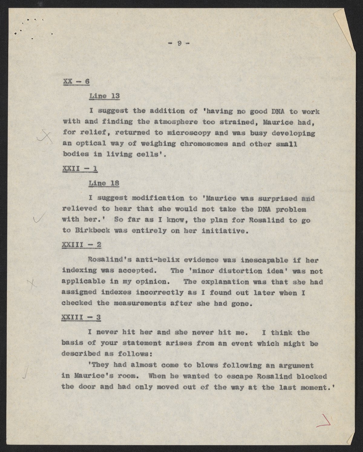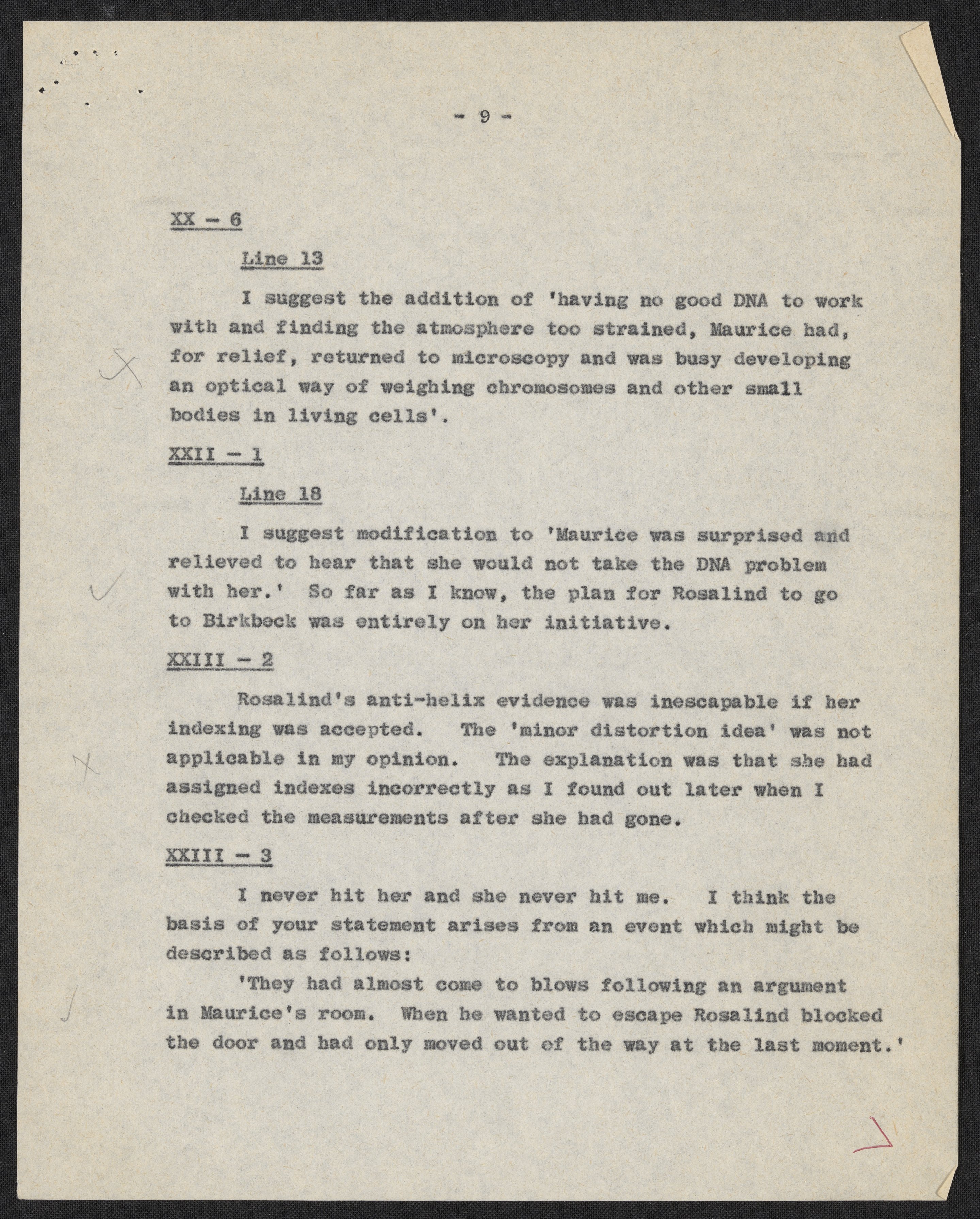 Letters and notes on "Honest Jim" from Maurice Wilkins to James D. Watson, July 1966