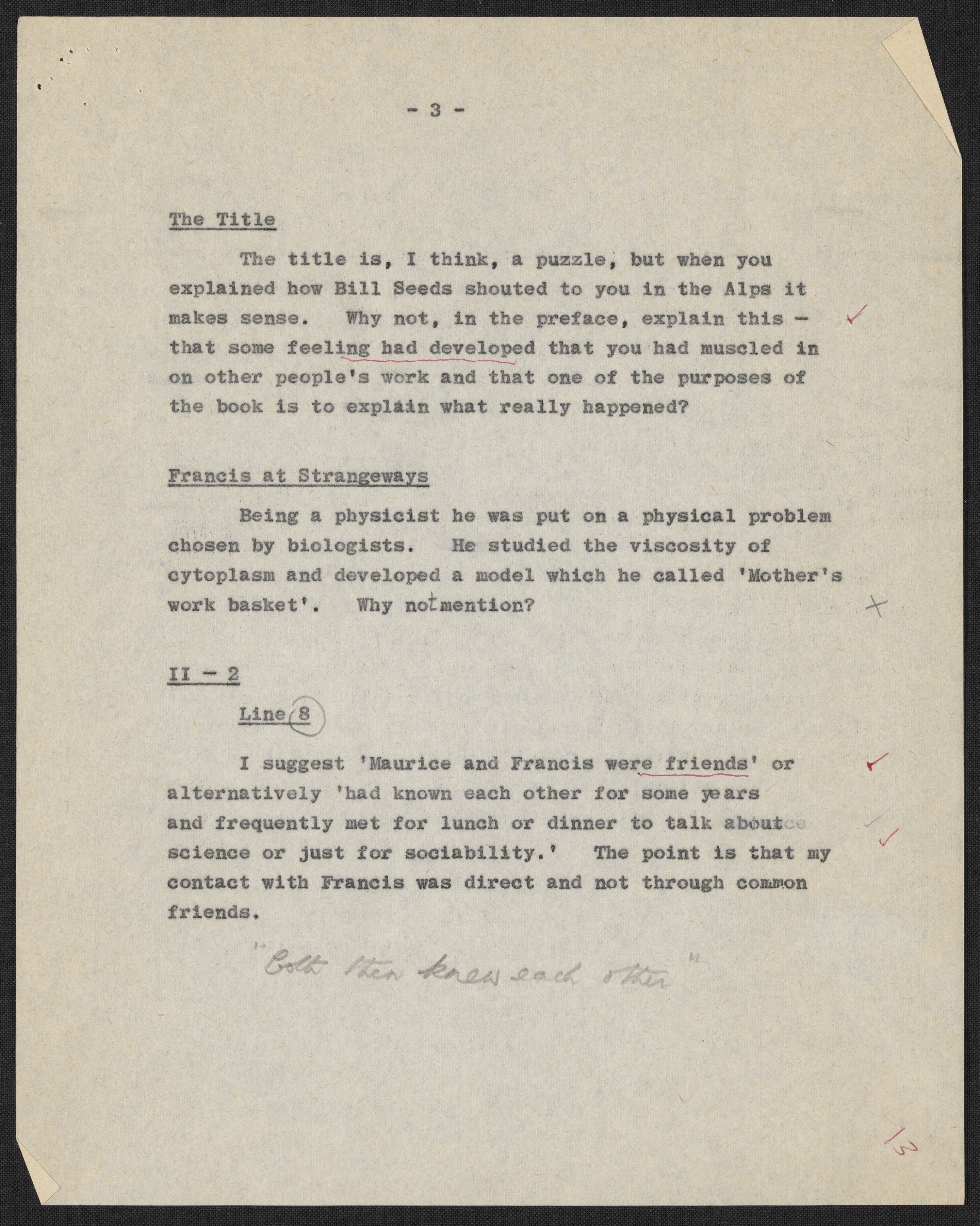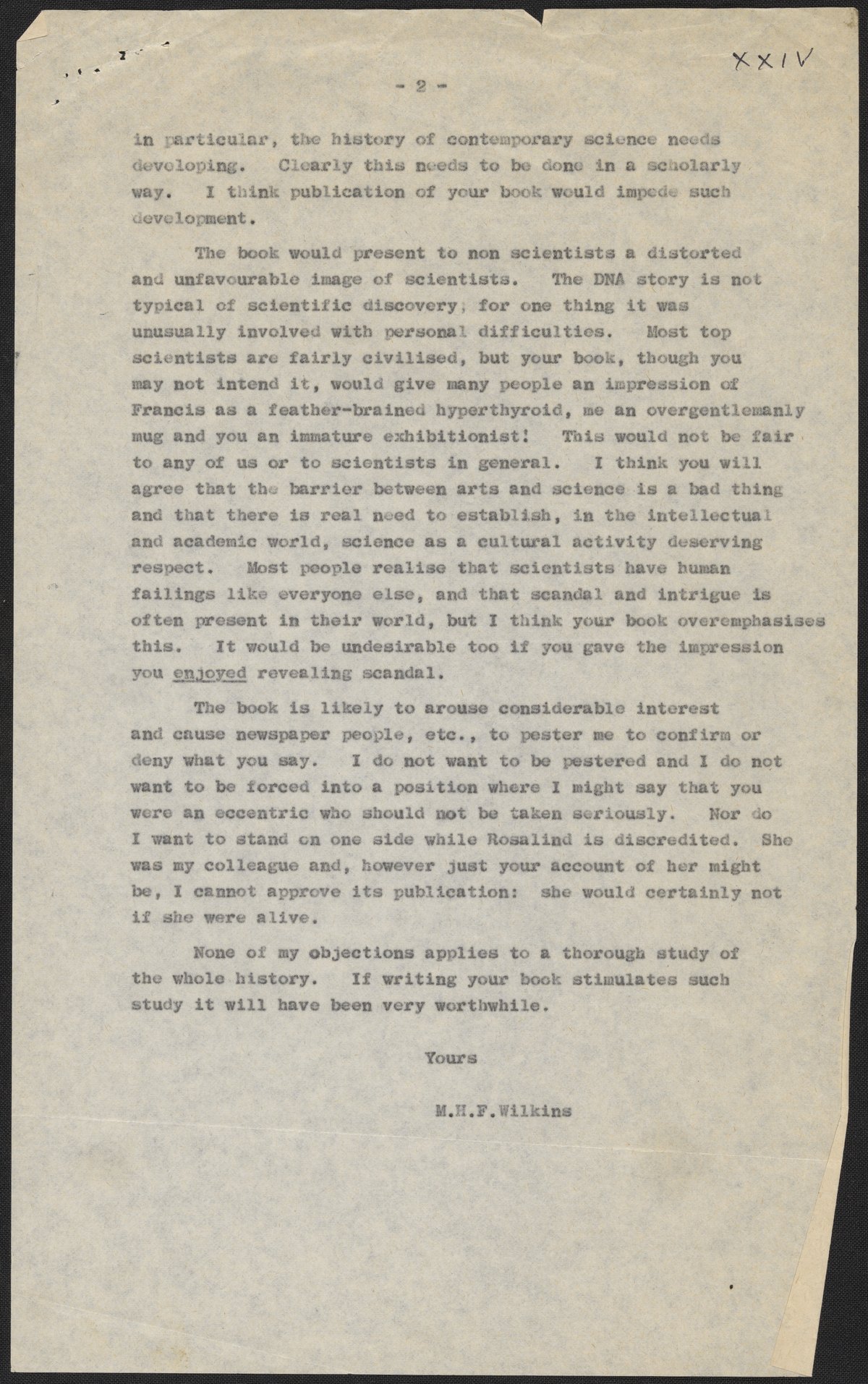 Wilkins, Maurice. “Letters and Notes on ‘Honest Jim’ from Maurice Wilkins to James D. Watson, July 1966,” 1966. History of Molecular Biology Collection, Box 3, Folder 2. Science History Institute. Philadelphia. https://digital.sciencehistory.org/works/nd9d0v9.