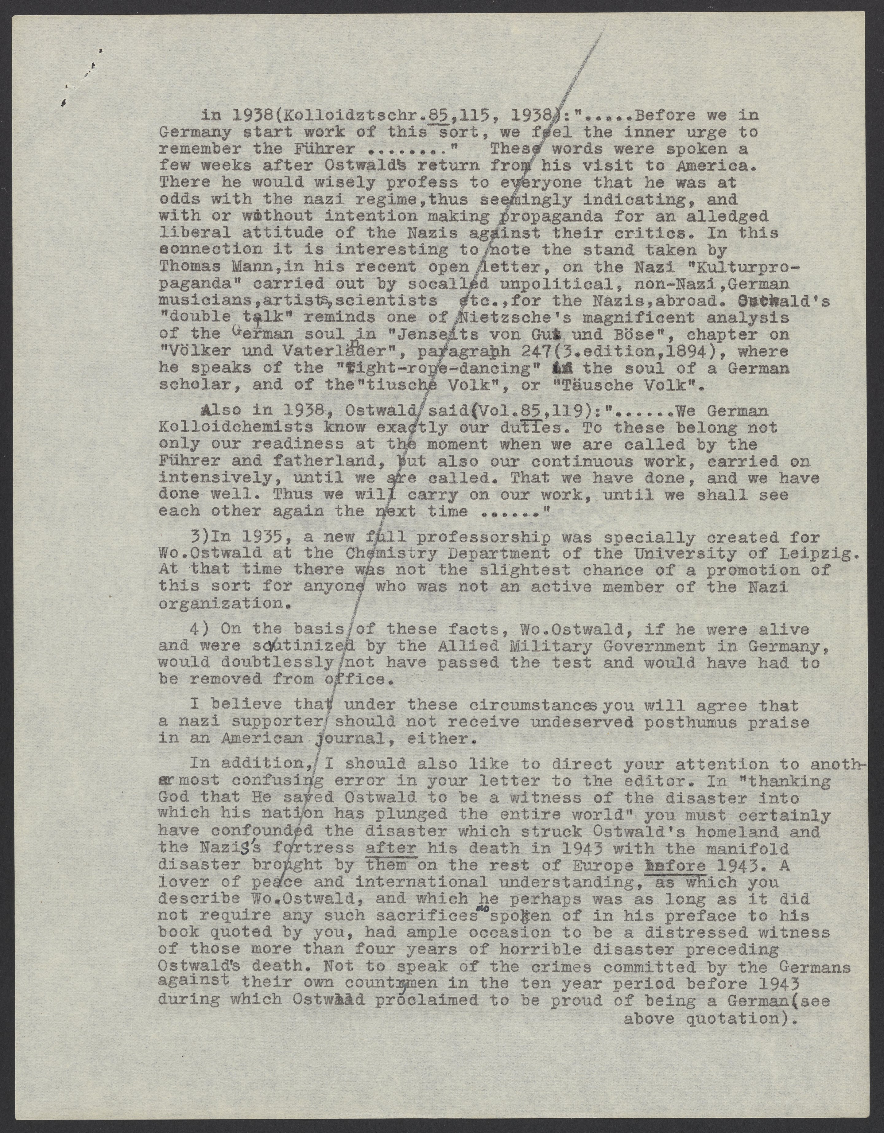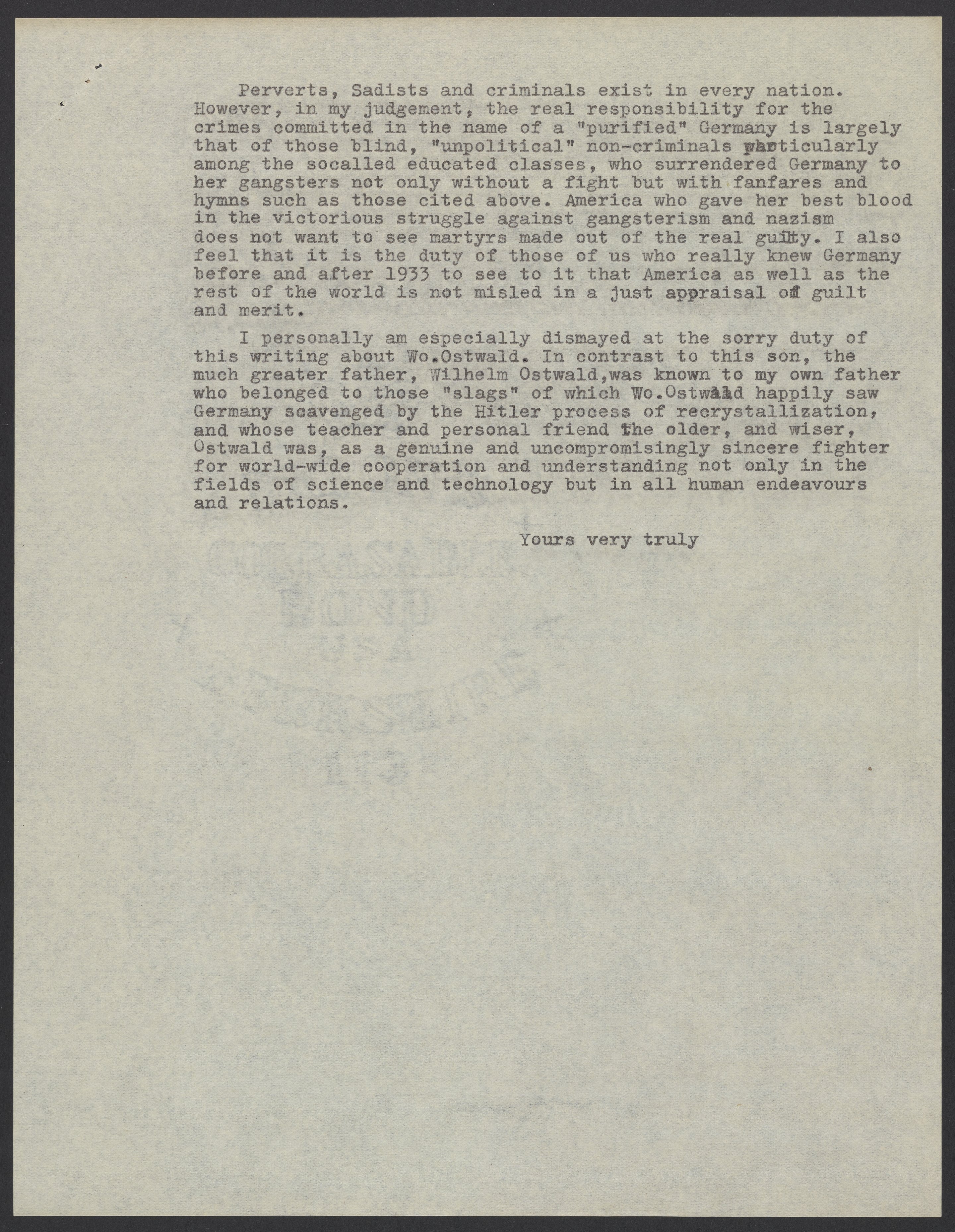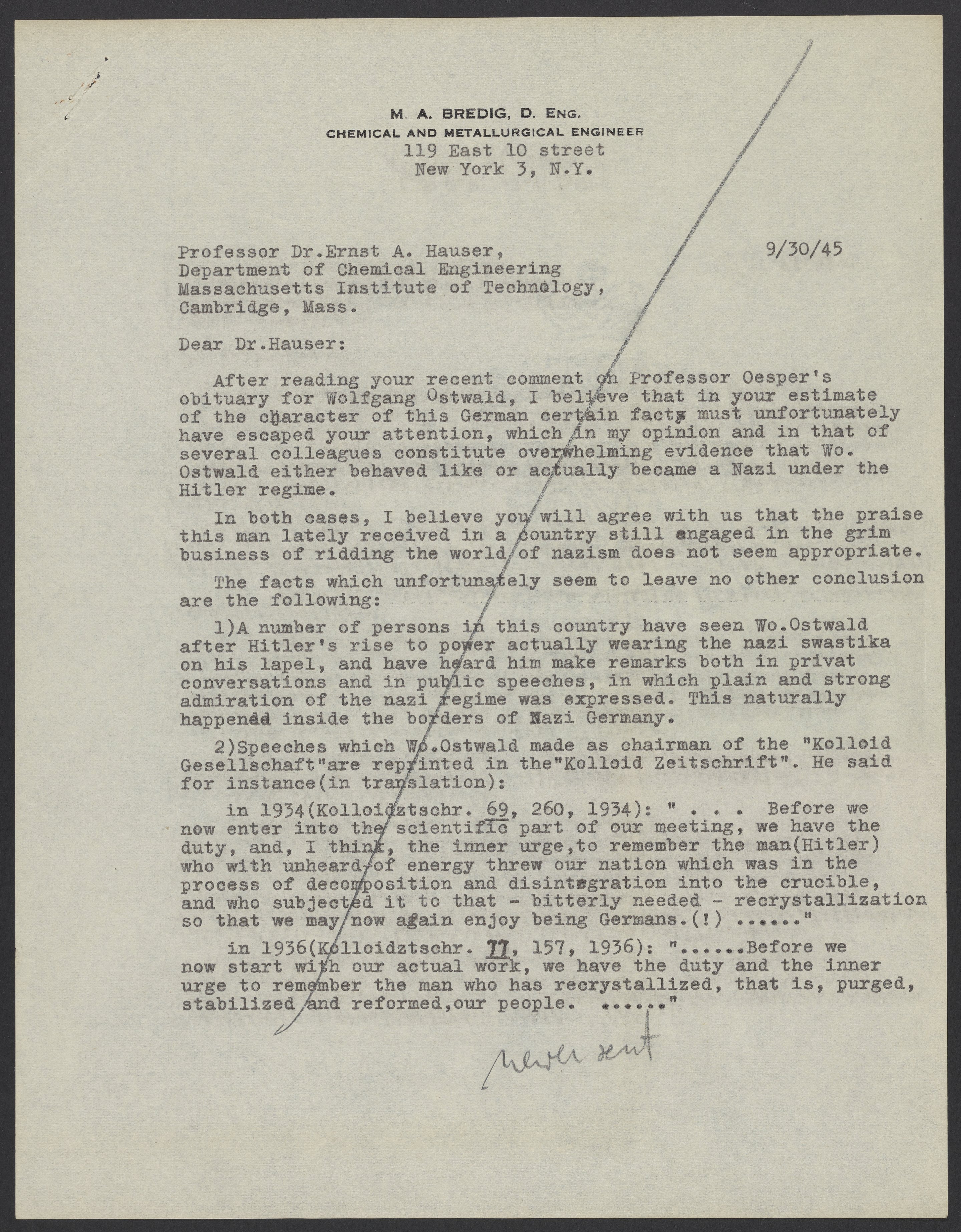 Letter from Max Bredig to Ernst A. Hauser, September 30, 1945
