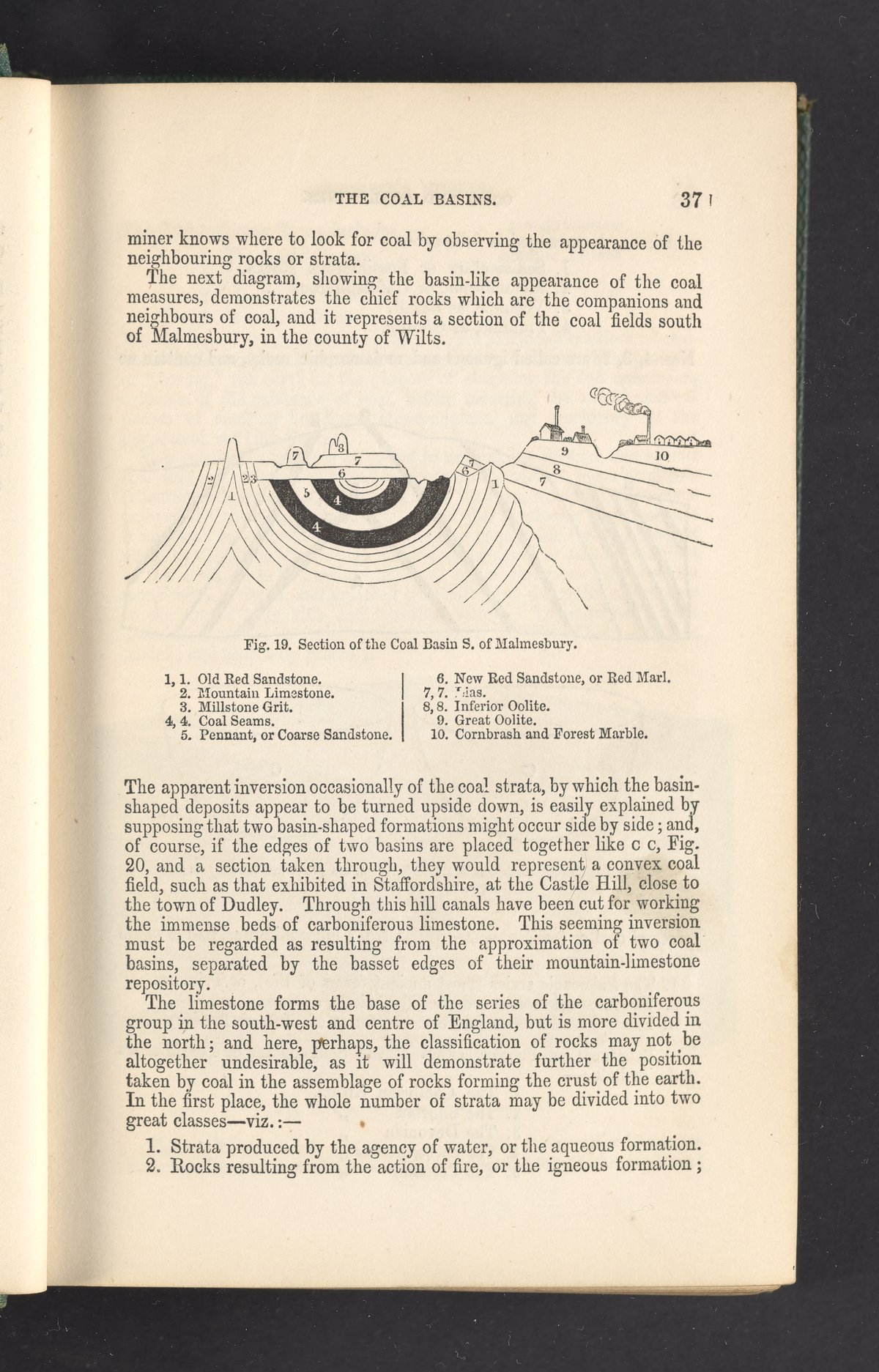 Pepper, John Henry. “Figure 19. Section of the Coal Basin South of Malmesbury.” The Playbook of Metals : Including Personal Narratives of Visits to Coal, Lead, Copper, and Tin Mines; with a Large Number of Interesting Experiments Relating to Alchemy and the Chemistry of Fifty Metallic Elements. London, England, 1862. https://digital.sciencehistory.org/works/nfv3sm1.