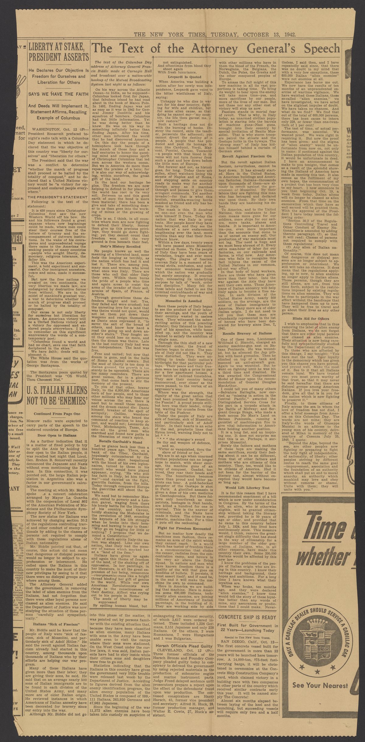 The Text of the Attorney General's Speech