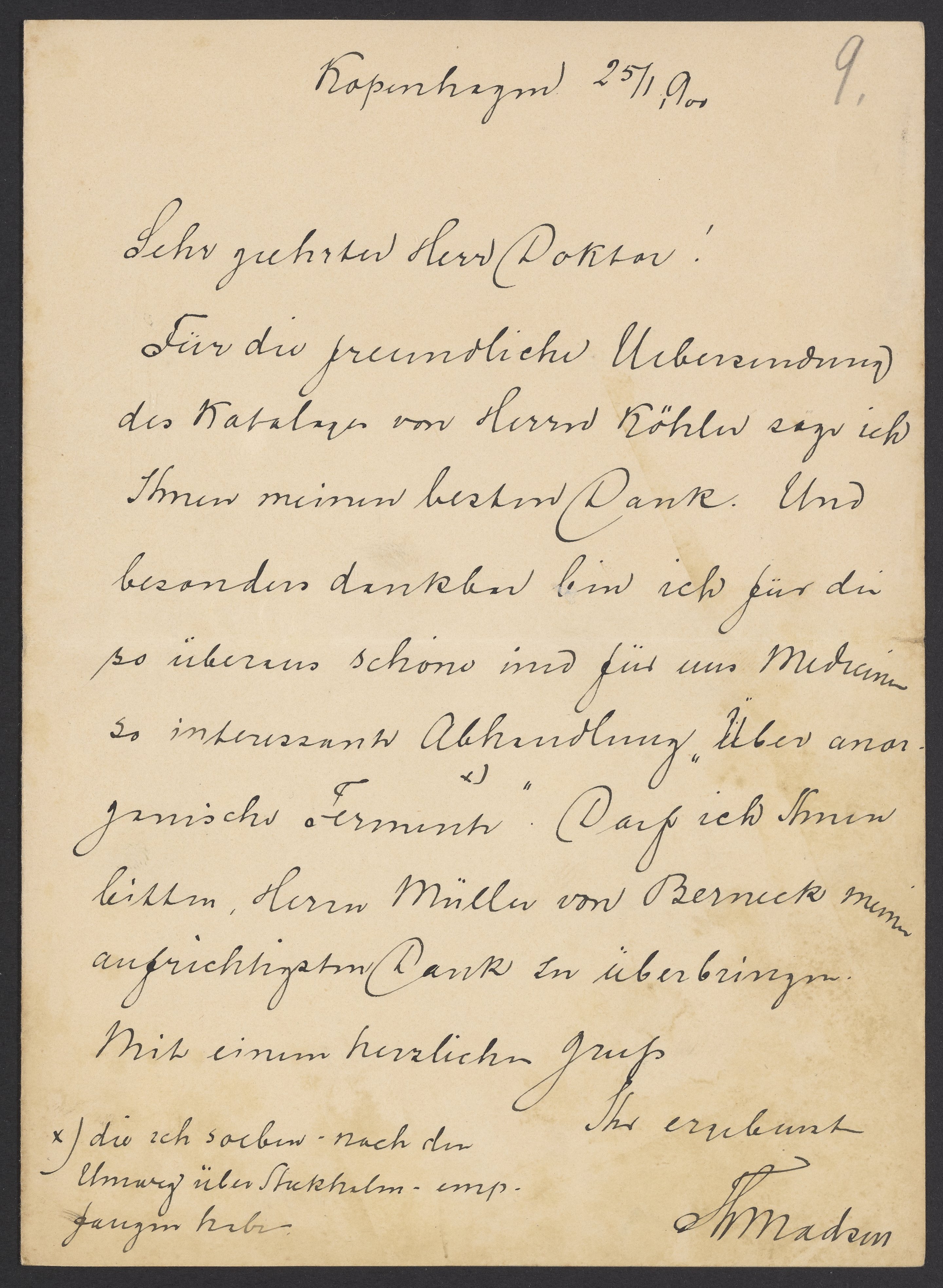 Letter from Thorvald Madsen to Georg Bredig, January 1900