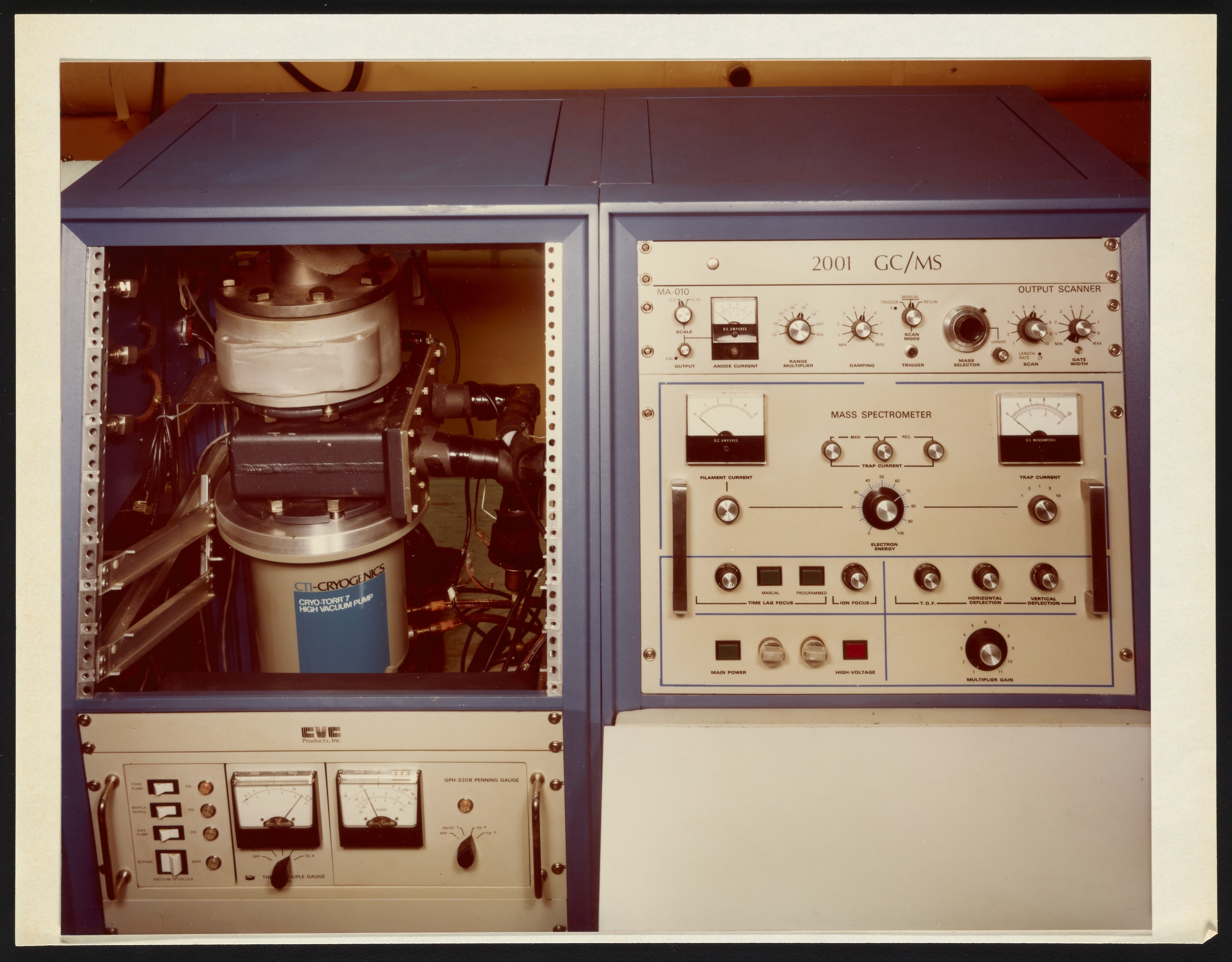 Consolidated Vacuum Corporation, and Bendix Corporation. “Consolidated Vacuum Corporation Model 2001 Masschromatograph,” circa 1973. Photographs from the Bendix Time-of-Flight Mass Spectrometer Collection, Box 3. Science History Institute. Philadelphia. https://digital.sciencehistory.org/works/nk322d848.
