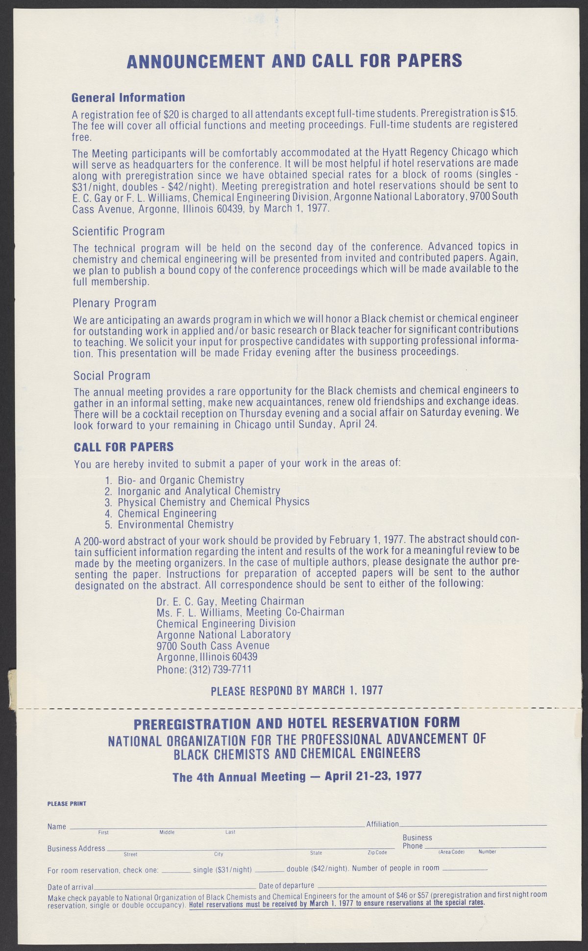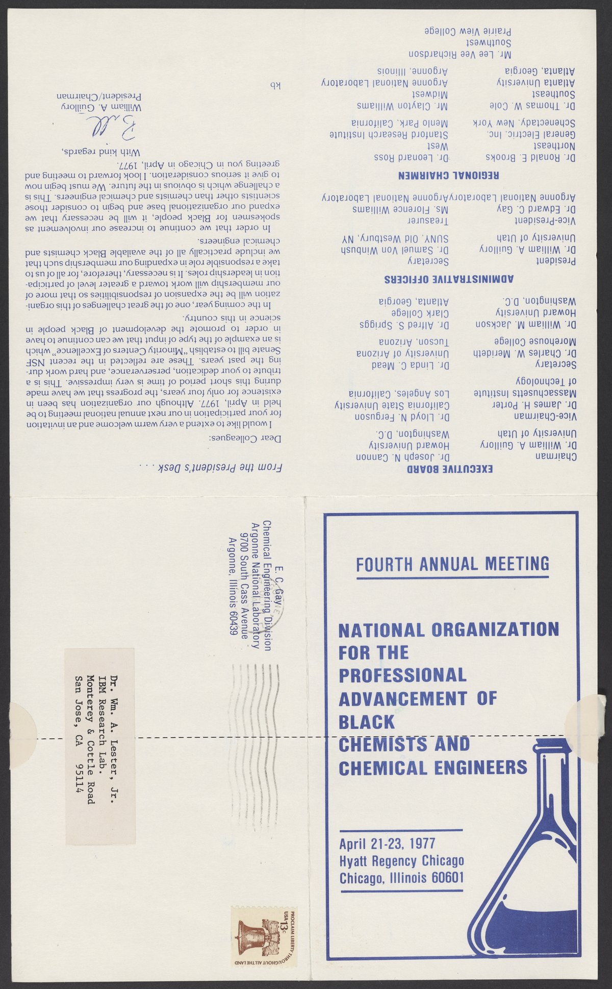 Invitation for the fourth annual national meeting of the National Organization for the Professional Advancement of Black Chemists and Chemical Engineers