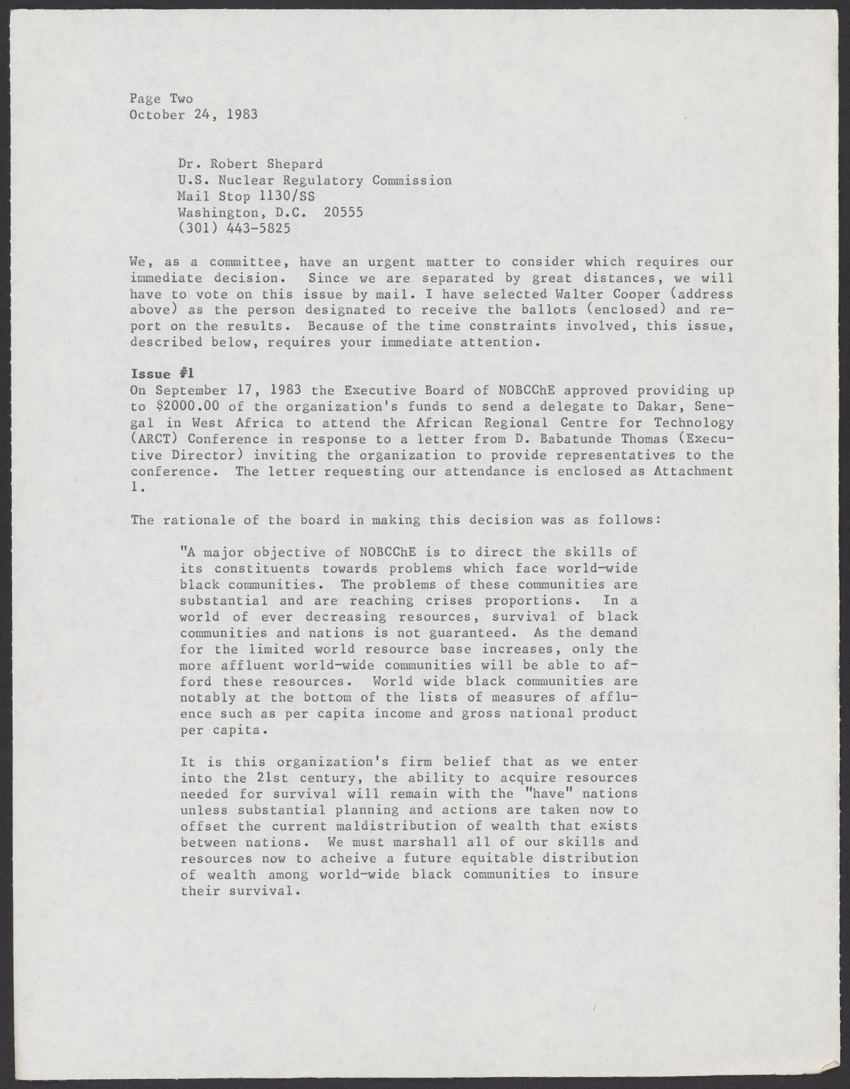 Porter, James H., and National Organization for Black Chemists and Chemical Engineers. “Letter to William A. Lester, Jr. from James H. Porter, October 24, 1983,” October 24, 1983. William A. Lester, Jr. Papers, Box 44, Folder 32. Science History Institute. Philadelphia. https://digital.sciencehistory.org/works/nlg6j2g.