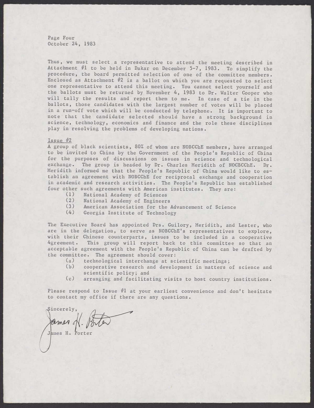 Letter to William A. Lester, Jr. from James H. Porter, October 24, 1983