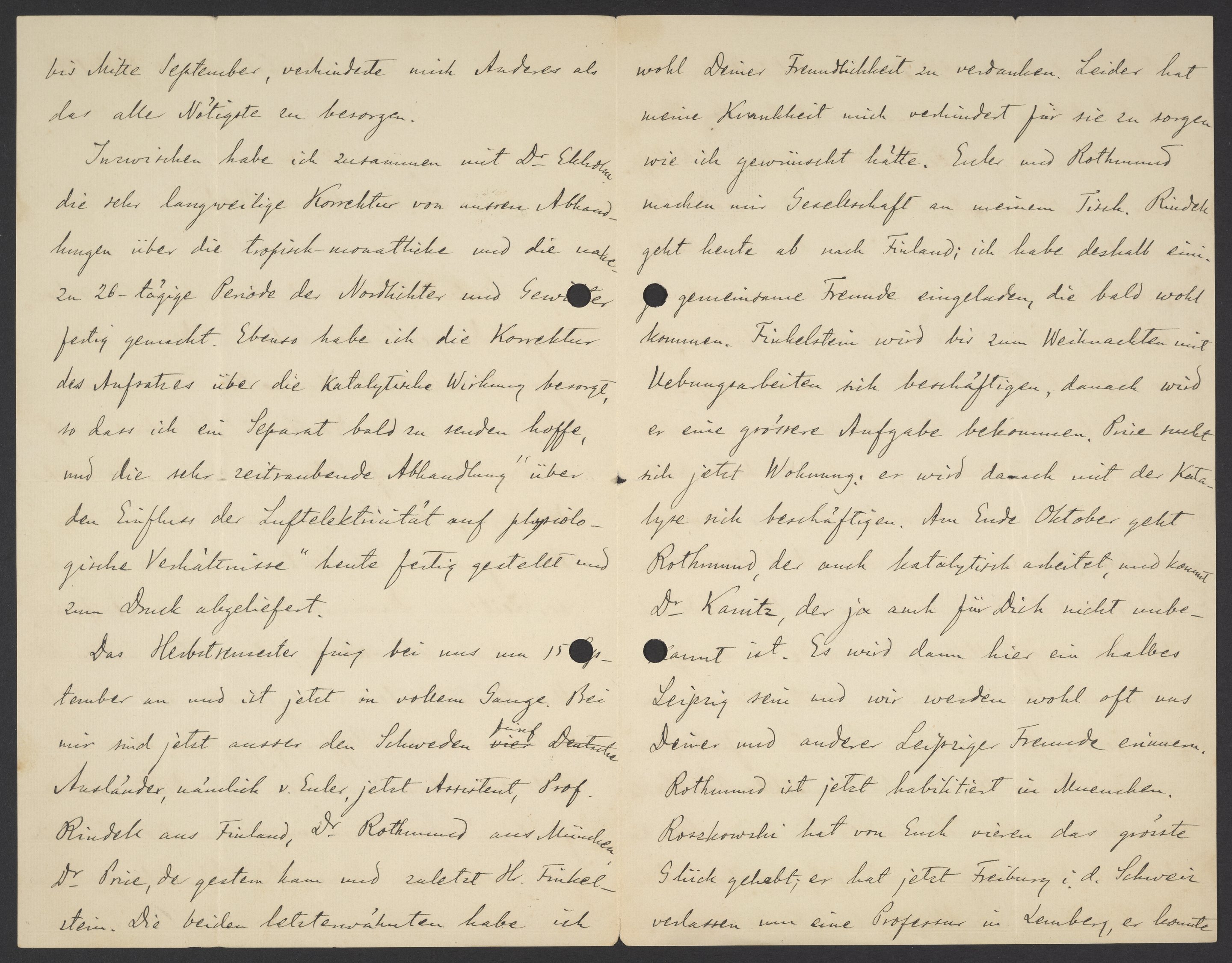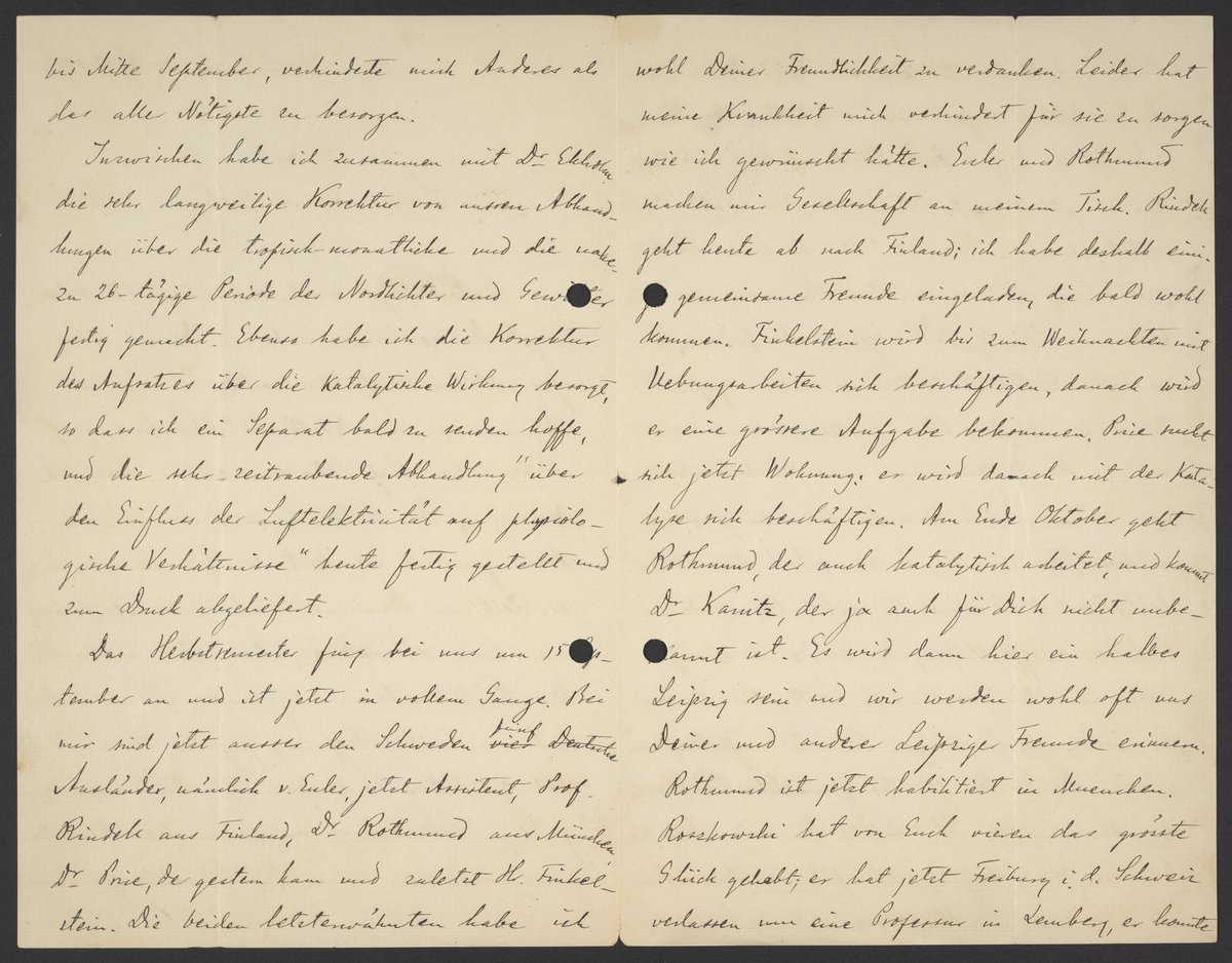 Letter from Svante Arrhenius to Georg Bredig, September 1898