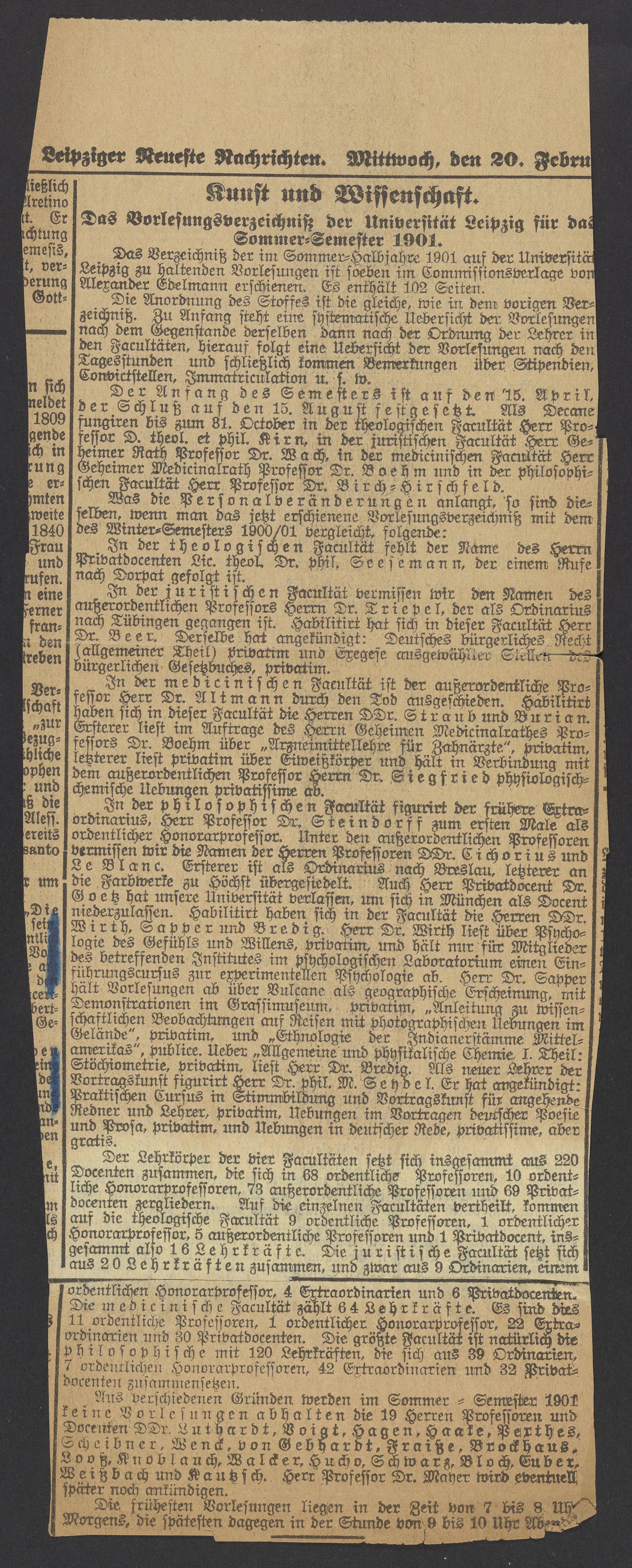 • The Course Catalog of the University of Leipzig for the Summer Semester 1901