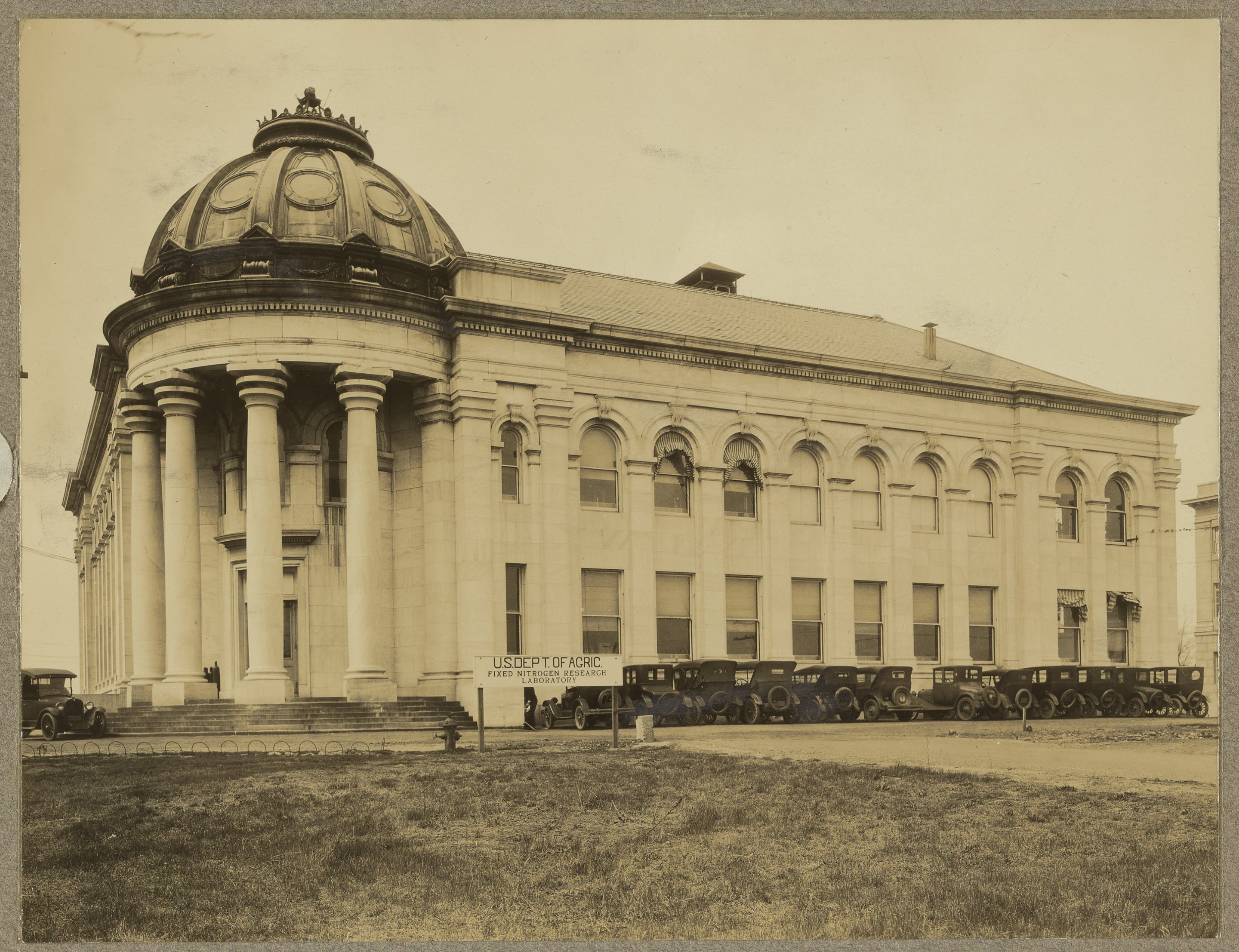 Small JPG1200 x 923px — 221 KBLarge JPG2880 x 2214px — 1.0 MBFull-sized JPG3081 x 2369px — 1.2 MBOriginal fileTIFF — 3081 x 2369px — 20.9 MBTwo views of the exterior of the U.S. Department of Agriculture's Fixed Nitrogen Research Laboratory facility located at American University near Washington, D.C. The Fixed Nitrogen Research Laboratory (F.N.R.L.) was established at American University in 1919 under the directorship of Arthur B. Lamb. Initially part of the War Department, the F.N.R.L. was the successor to several wartime initiatives to develop a secure domestic supply of nitrate compounds necessary for the manufacture of explosives during World War I. With a staff of about 110 individuals, including 35 to 50 chemists, the F.N.R.L. focused on the manufacture, production, and development of products of atmospheric nitrogen, including munitions and fertilizers.