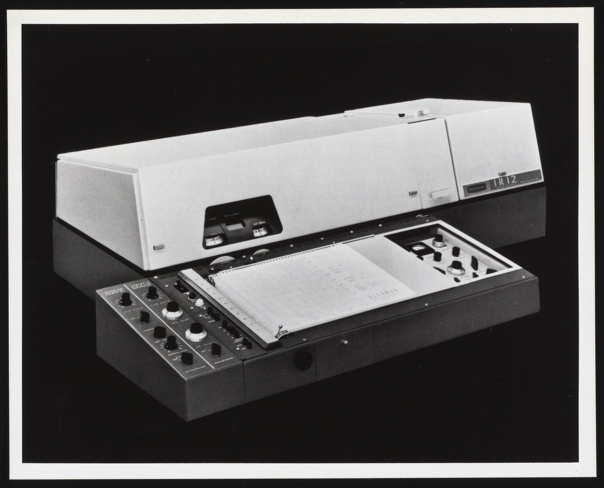 “Beckman IR-12 Spectrophotometer,” 1940–1949. Beckman Historical Collection, Box 56, Folder 40. Science History Institute. Philadelphia. https://digital.sciencehistory.org/works/np1939232.