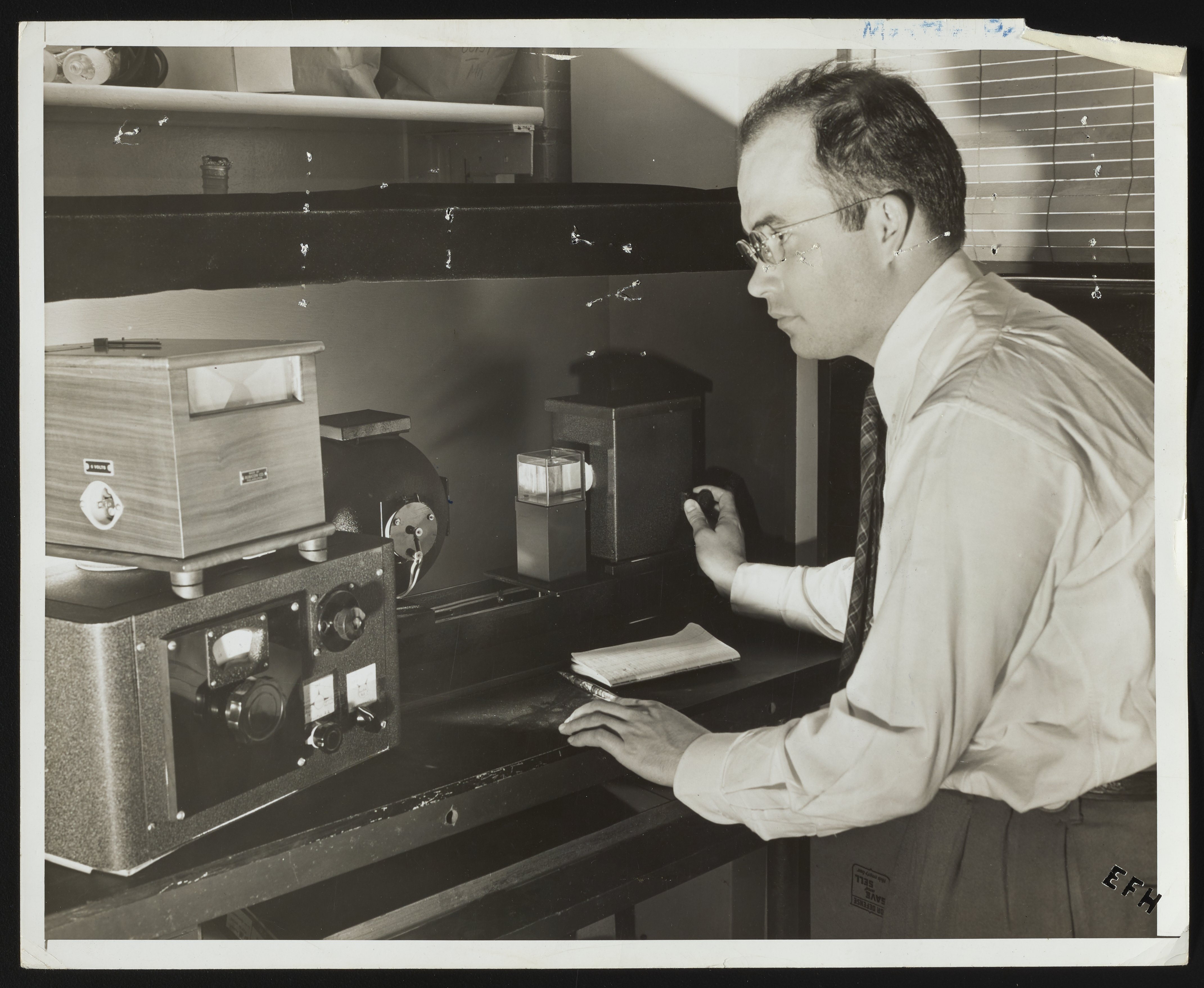 Hercules Incorporated. “W.P. Mauley Operating Photoelectric Haze Meter at Hercules Hopewell Plant,” March 1945. Photographs from the Records & Ephemera of Hercules Incorporated, Box 1, Folder 35. Science History Institute. Philadelphia. https://digital.sciencehistory.org/works/np193b00z.