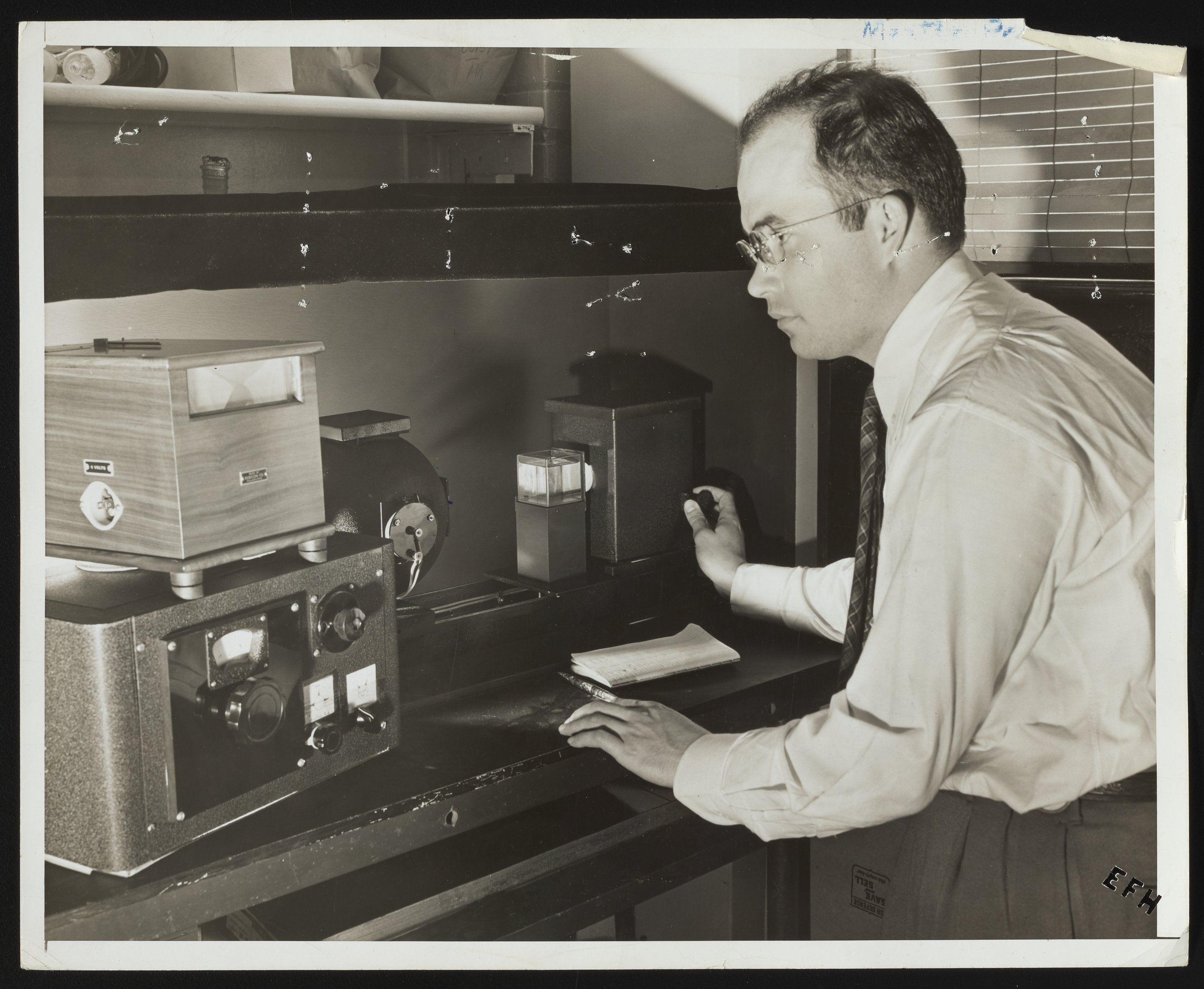 W.P. Mauley operating photoelectric haze meter at Hercules Hopewell plant