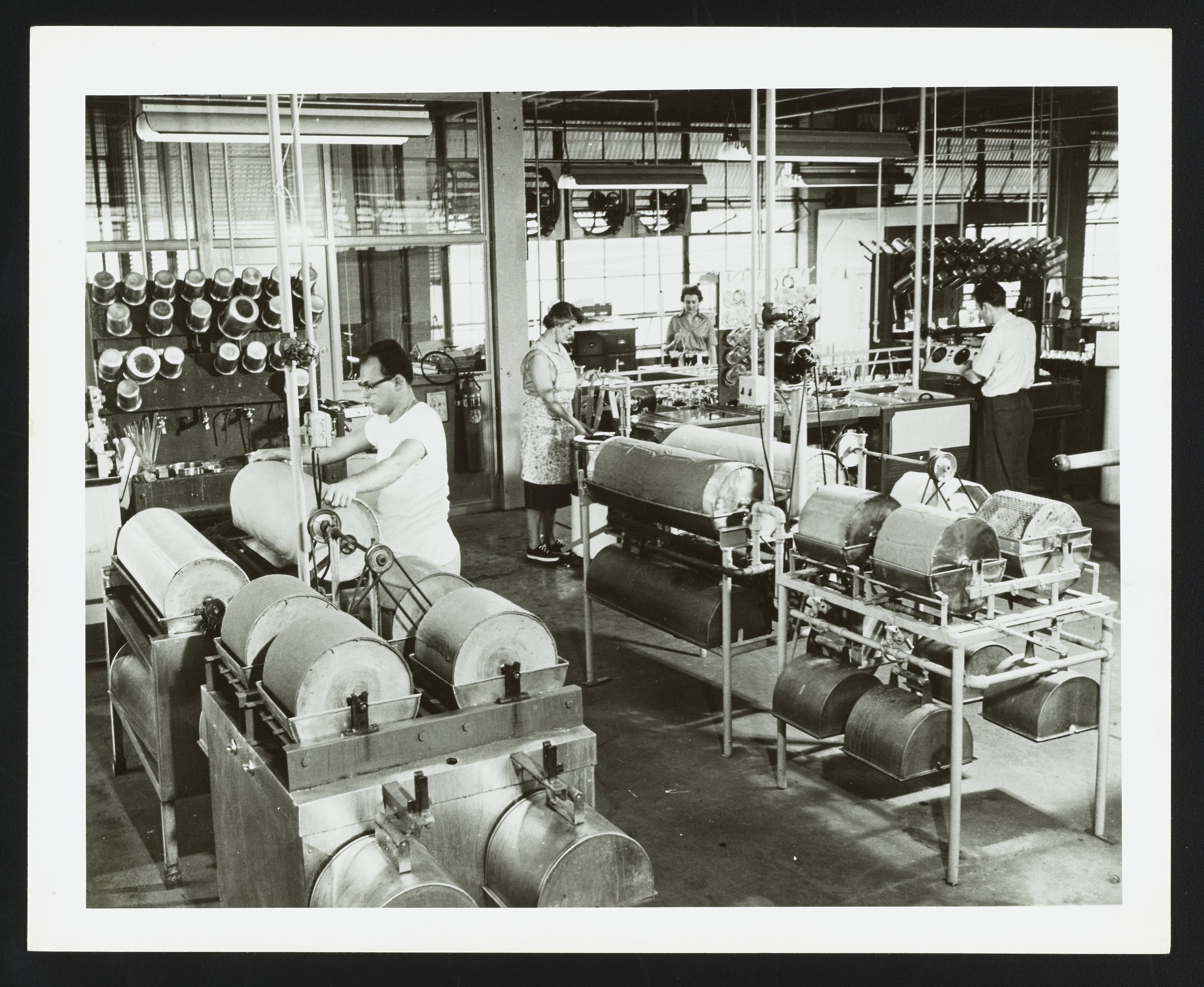 General view of the Customer Service and Quality Control Laboratory at the Althouse Chemical Company plant in Reading, Pennsylvania. The employees visible in the photograph are, from left: Tom Margolillo; Dot Bowen; Jane Reikeiuer; and Leo Labrecque.