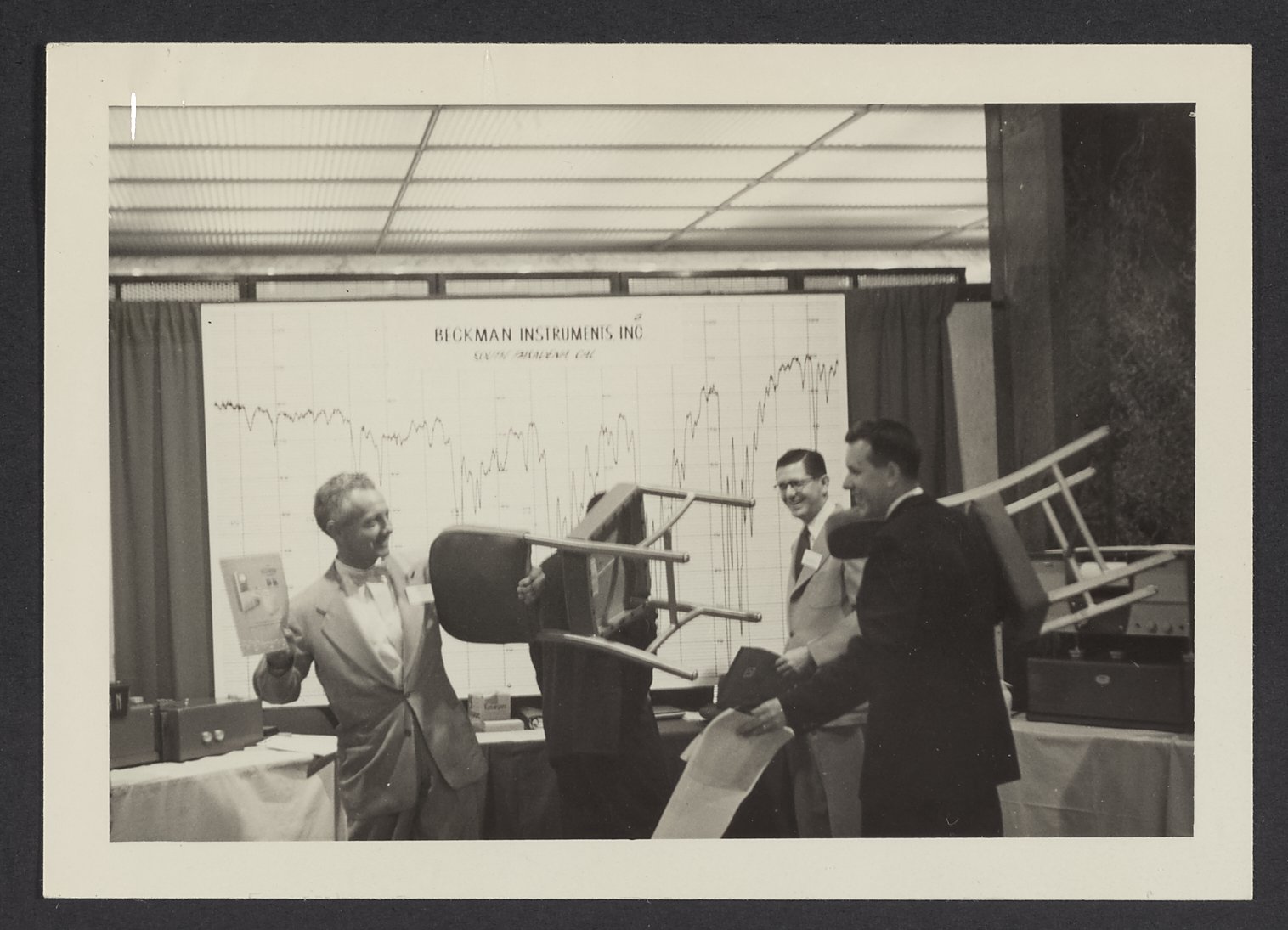 Patterson, E. B. “Spectrophotometer Salesmen ‘Fighting’ with Chairs at the Society for Applied Spectroscopy Meeting,” 1954. Beckman Historical Collection, Box 10, Folder 3. Science History Institute. Philadelphia. https://digital.sciencehistory.org/works/ns0646841.