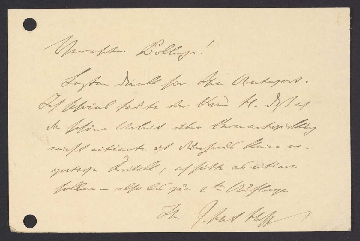 Postcard from Jacobus H. van 't Hoff to Georg Bredig, October 1902