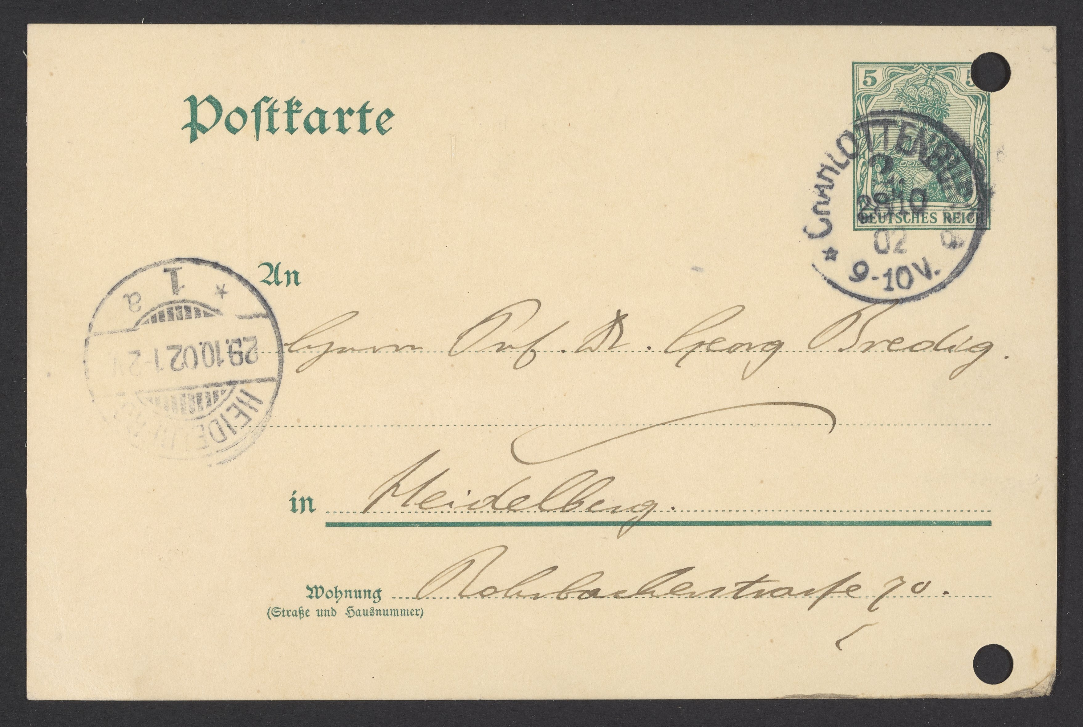 Postcard from Jacobus H. van 't Hoff to Georg Bredig, October 1902