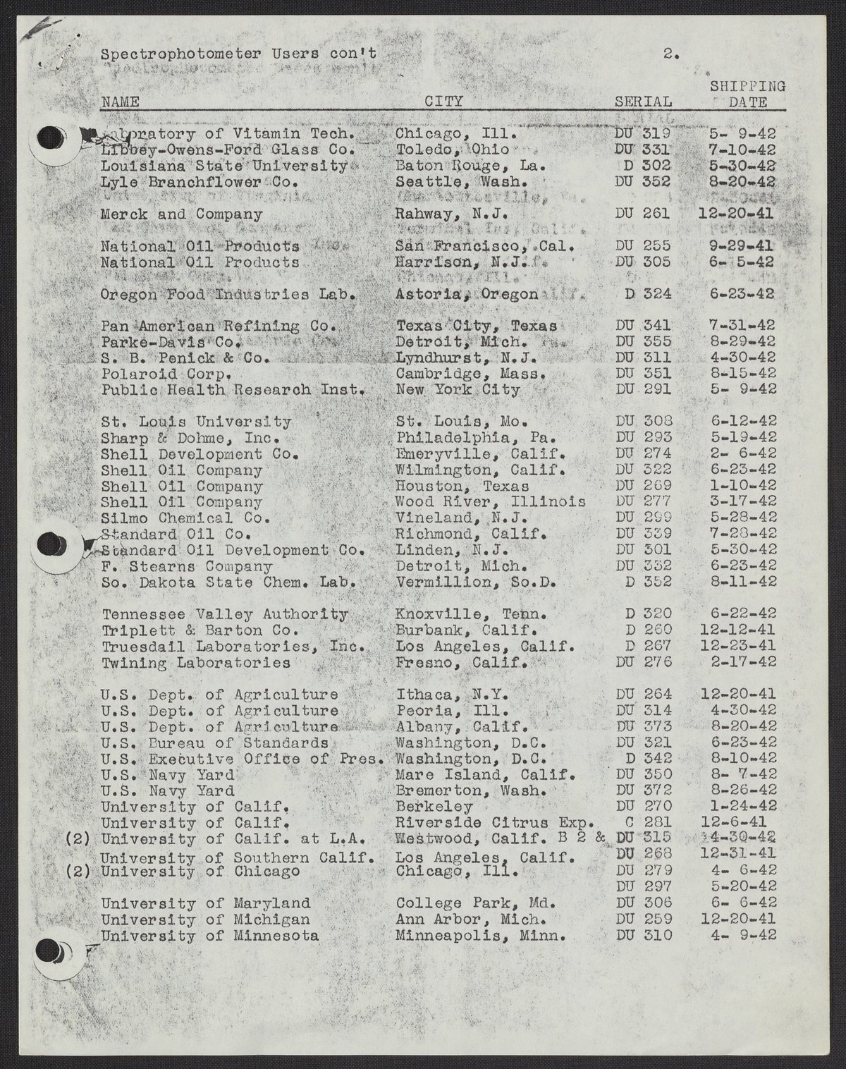 Customer lists of the first 100 DU spectrophotometers sold