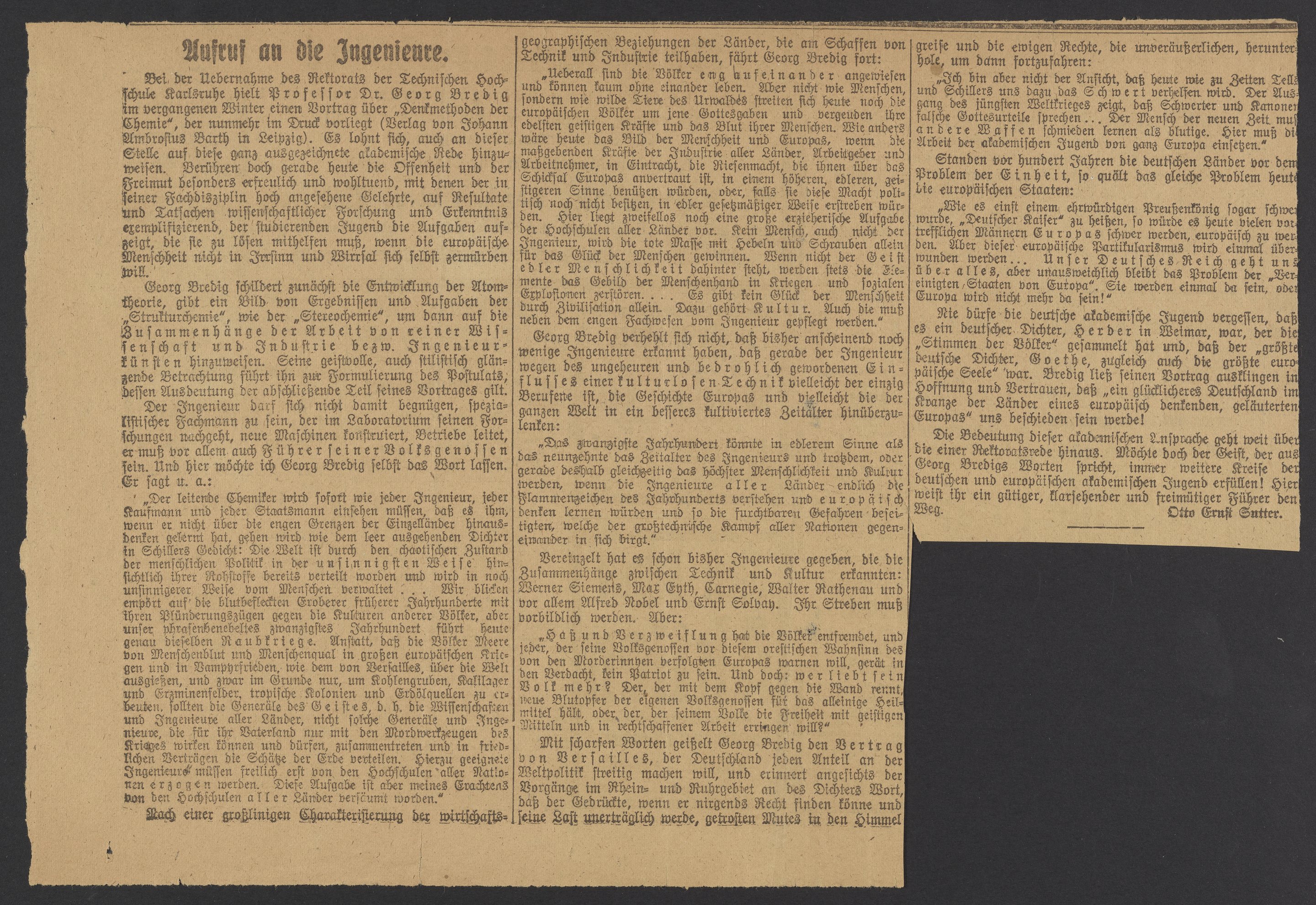 “Aufruf an Die Ingenieure,” n.d. Papers of Georg and Max Bredig, Box 4, Folder 13. Science History Institute. Philadelphia. https://digital.sciencehistory.org/works/nx4cjrs.