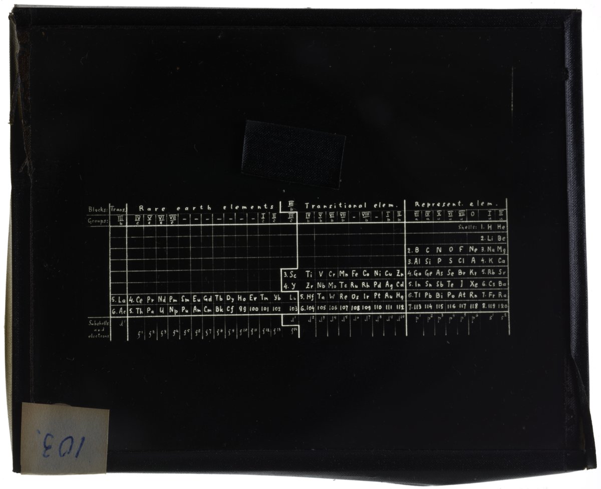 Left-step series table with elements arranged according to their valences1955 (Original design), Circa 1957 (Date attributed to slide)