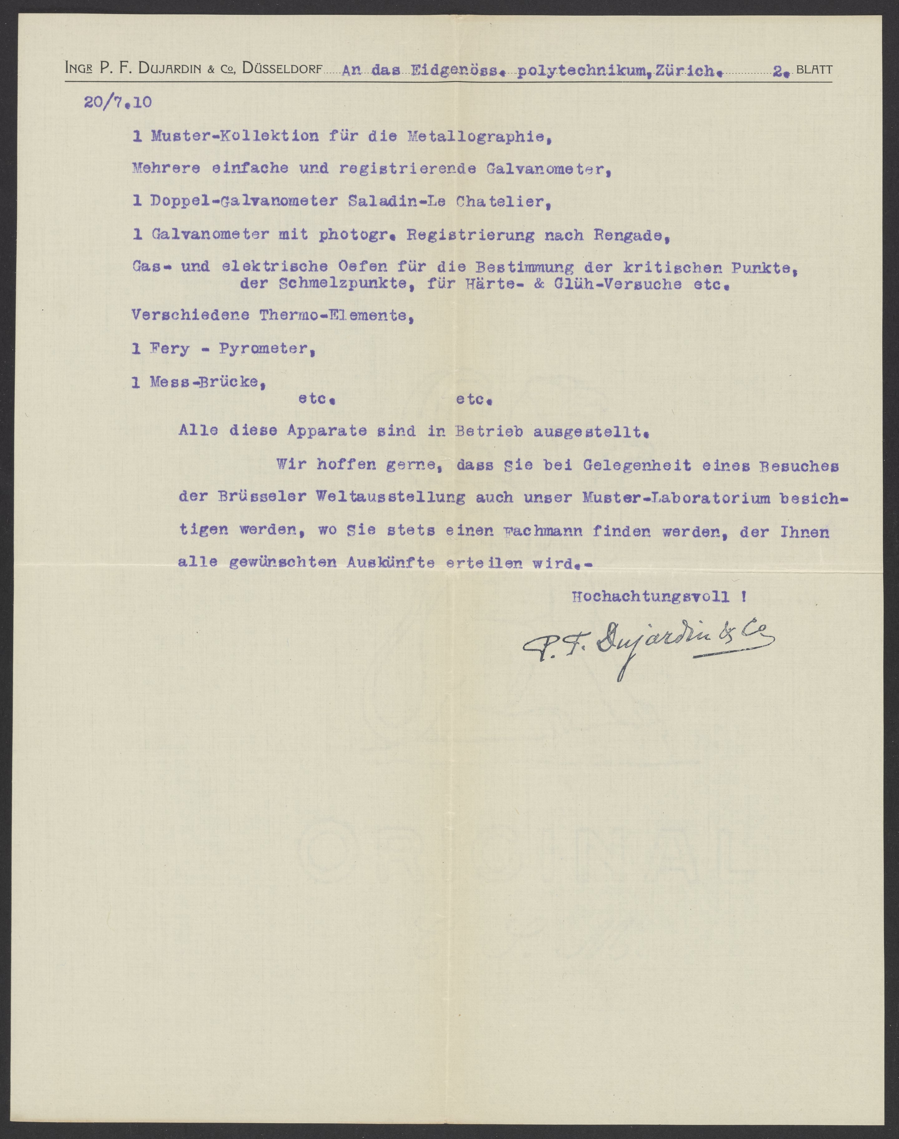 P. F. Dujardin & Co. “Letter from P.F. Dujardin & Co. Advertising Machines and Products for Metallographic Laboratories,” July 20, 1910. Papers of Georg and Max Bredig, Box 3, Folder 3. Science History Institute. Philadelphia. https://digital.sciencehistory.org/works/o15rqfk.