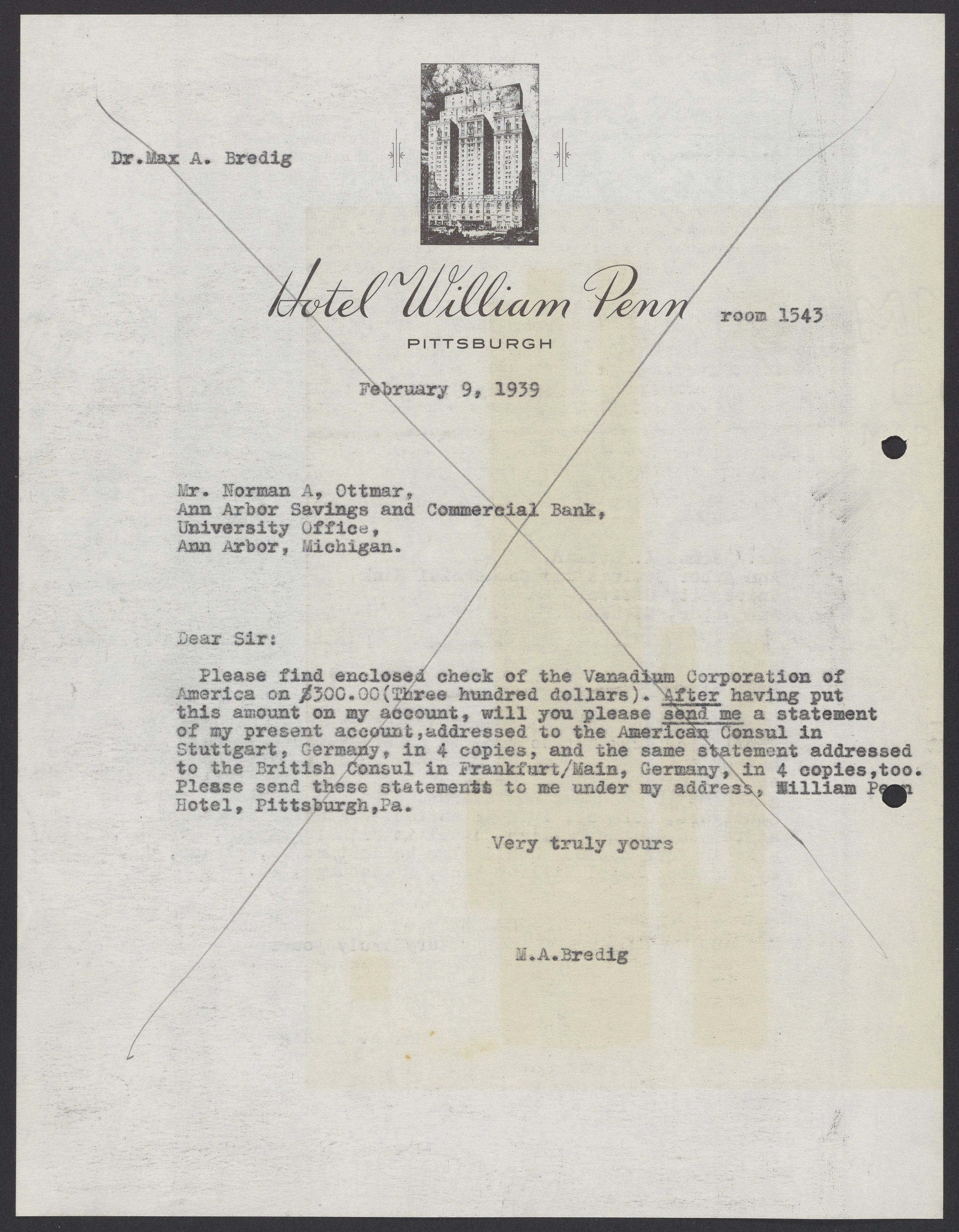 Small JPG1200 x 1545px — 233 KBLarge JPG2880 x 3709px — 1.6 MBFull-sized JPG5285 x 6806px — 5.5 MBOriginal fileTIFF — 5285 x 6806px — 103 MBMax Albert Bredig (1902-1977) sends the Ann Arbor Savings and Commercial Bank a check and requests copies of his account statements.