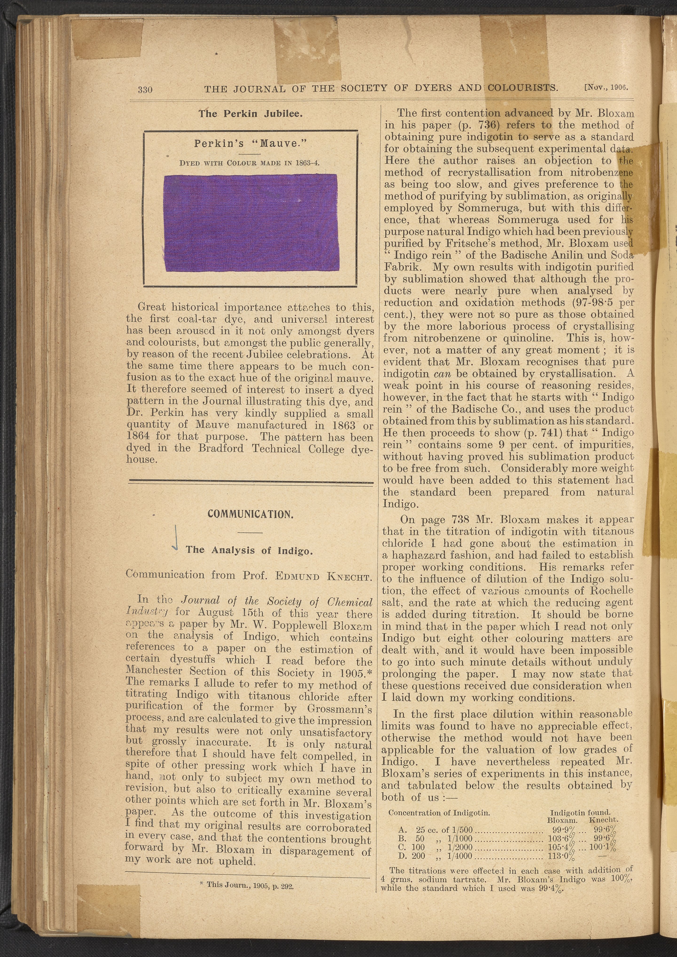 Journal of the Society of Dyers and Colourists. Journal of the Society of Dyers and Colourists, November 1906. Bradford (West Yorkshire), England: Society of Dyers and Colourists, 1906–1954. https://digital.sciencehistory.org/works/o2sfuyr.