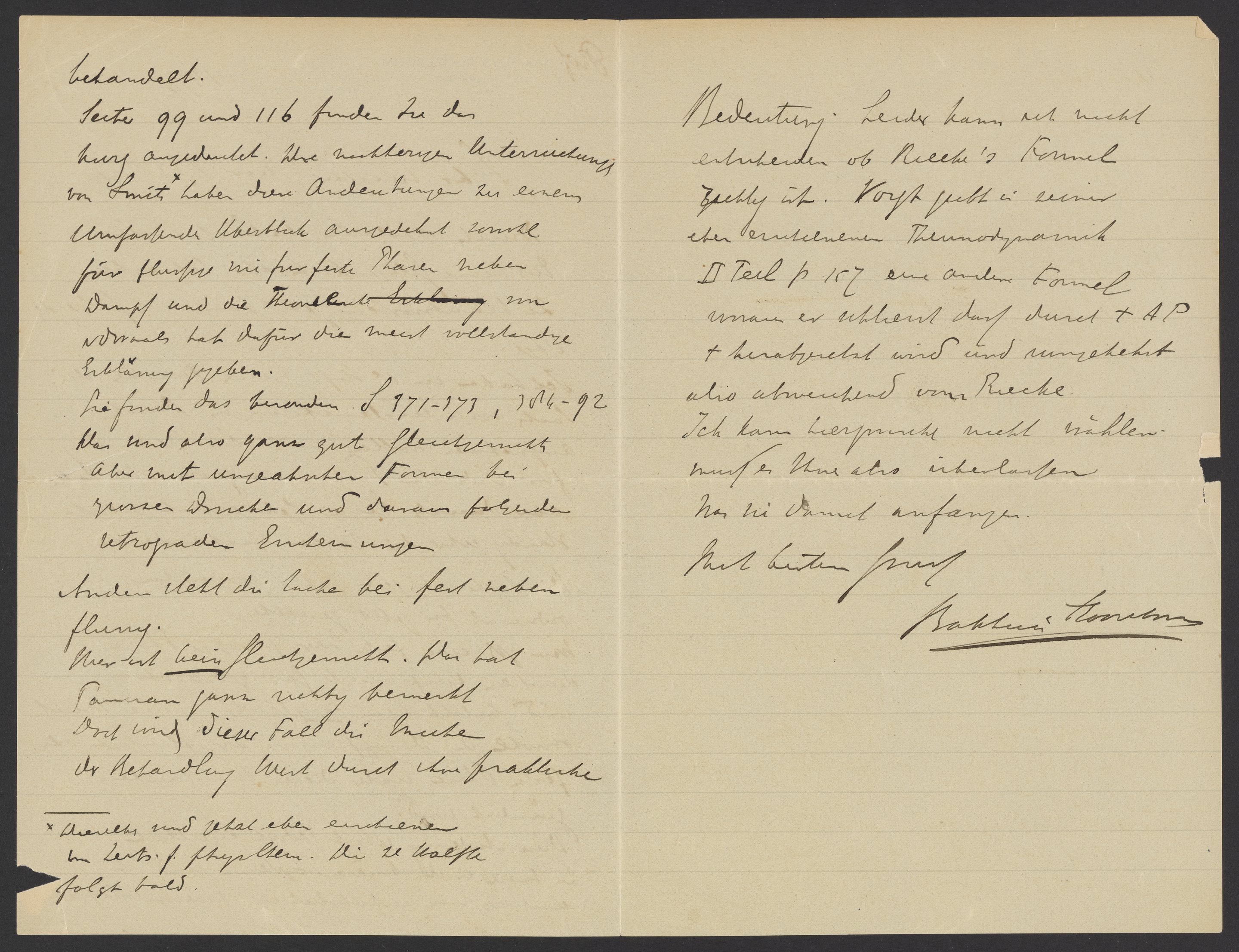 Leider kann ich nicht entscheiden ob Riecke’s Formel richtig ist. Vogt gibt in seiner eben erschienenen Thermodynamik II Teil p. 167 eine andere Formel woran er erklärt daß durch + AP + herabgesetzt wird und umgekehrt also abweichend von Riecke.