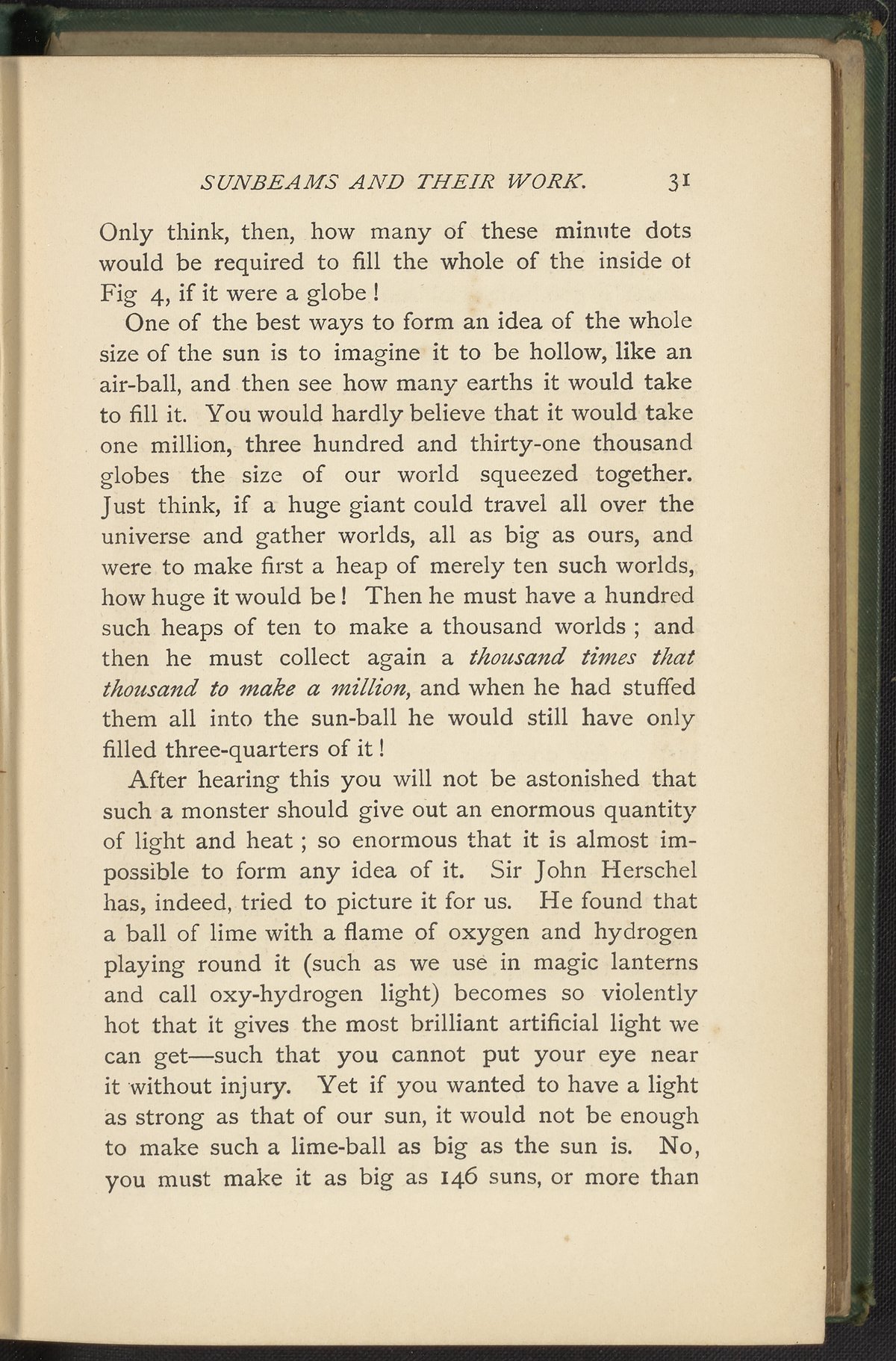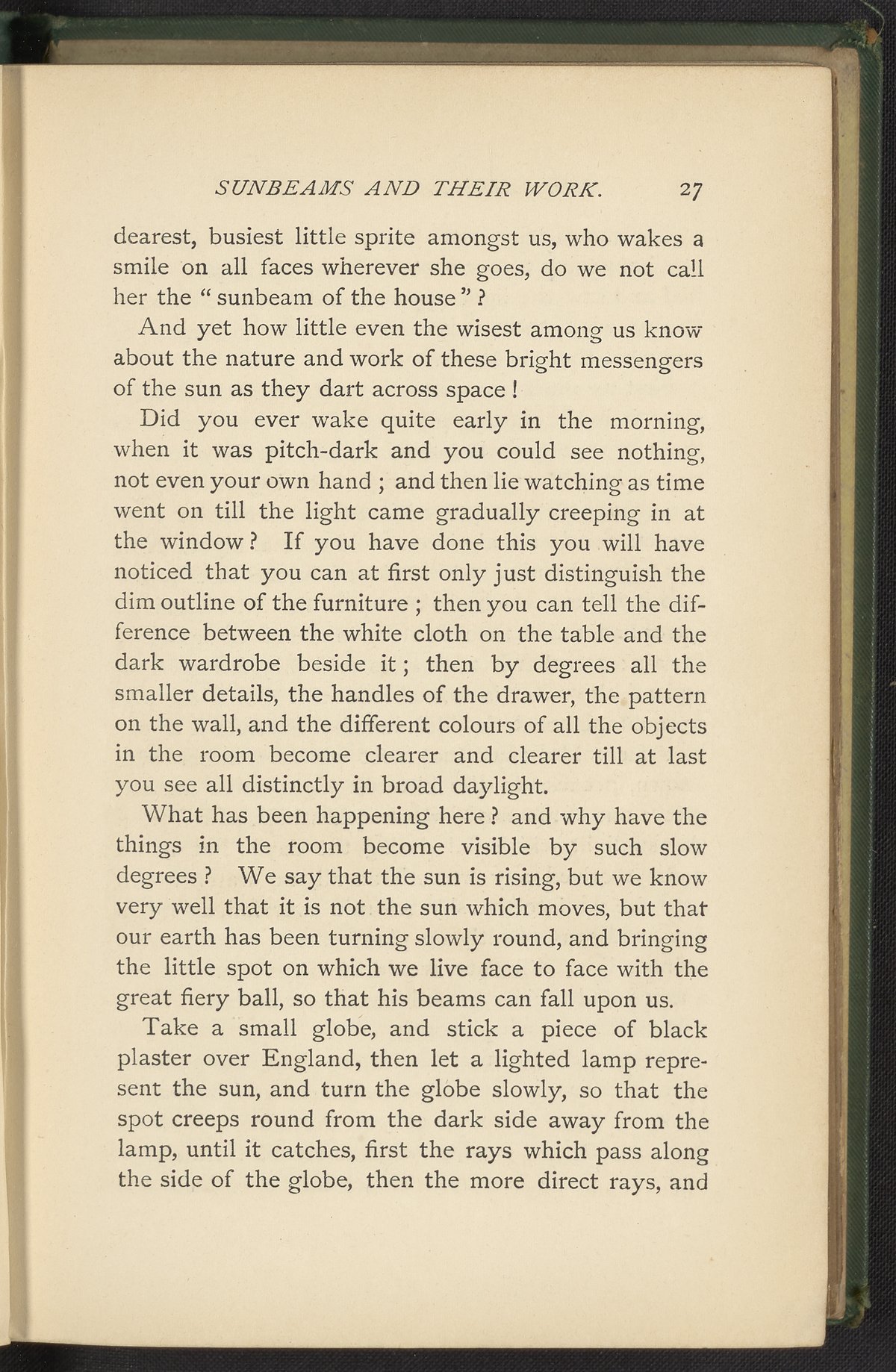 Small JPG1200 x 1677px — 515 KBFull-sized JPG2221 x 3103px — 1.5 MBOriginal fileTIFF — 2221 x 3103px — 19.8 MBArabella Burton Buckley (1840-1929) was a writer and science educator who championed Darwinian evolution as opposed to the contemporary emphasis on competition and physical survival. This work, one of Buckley's earliest, includes a collection of ten scientific lectures delivered to an audience of children in spring 1878. The lectures were reformatted into chapters and published as The Fairy-Land of Science in London in 1878. The edition digitized here was published in 1883.