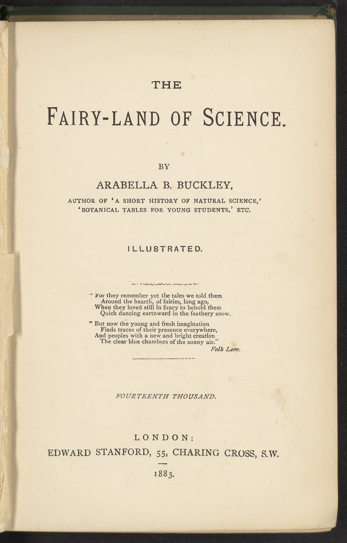 Buckley, Arabella B. (Arabella Burton). “The Fairy-Land of Science.” London, England: E. Standford, 1883. Q163 .B83 1883. Science History Institute. Philadelphia. https://digital.sciencehistory.org/works/o6hvpac.