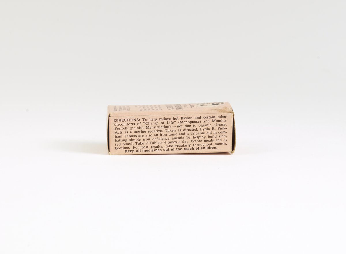 Science History Institute. Lydia E. Pinkham Menstrual Relief Tablets. Photograph, 2023. Science History Institute. Philadelphia. https://digital.sciencehistory.org/works/odaldrb.
