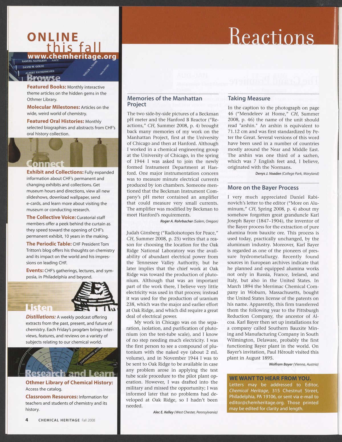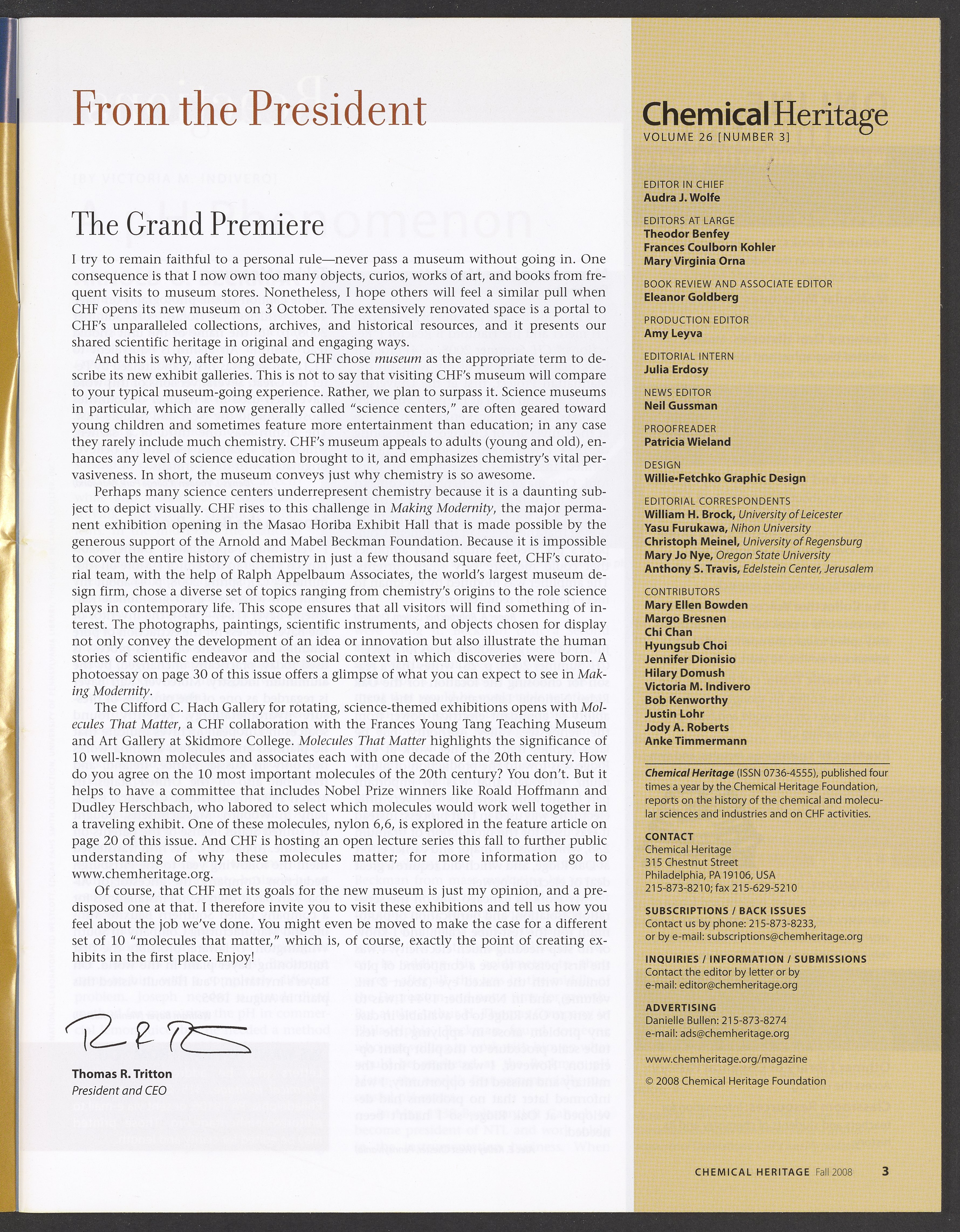 Chemical Heritage, Volume 26 Number 3