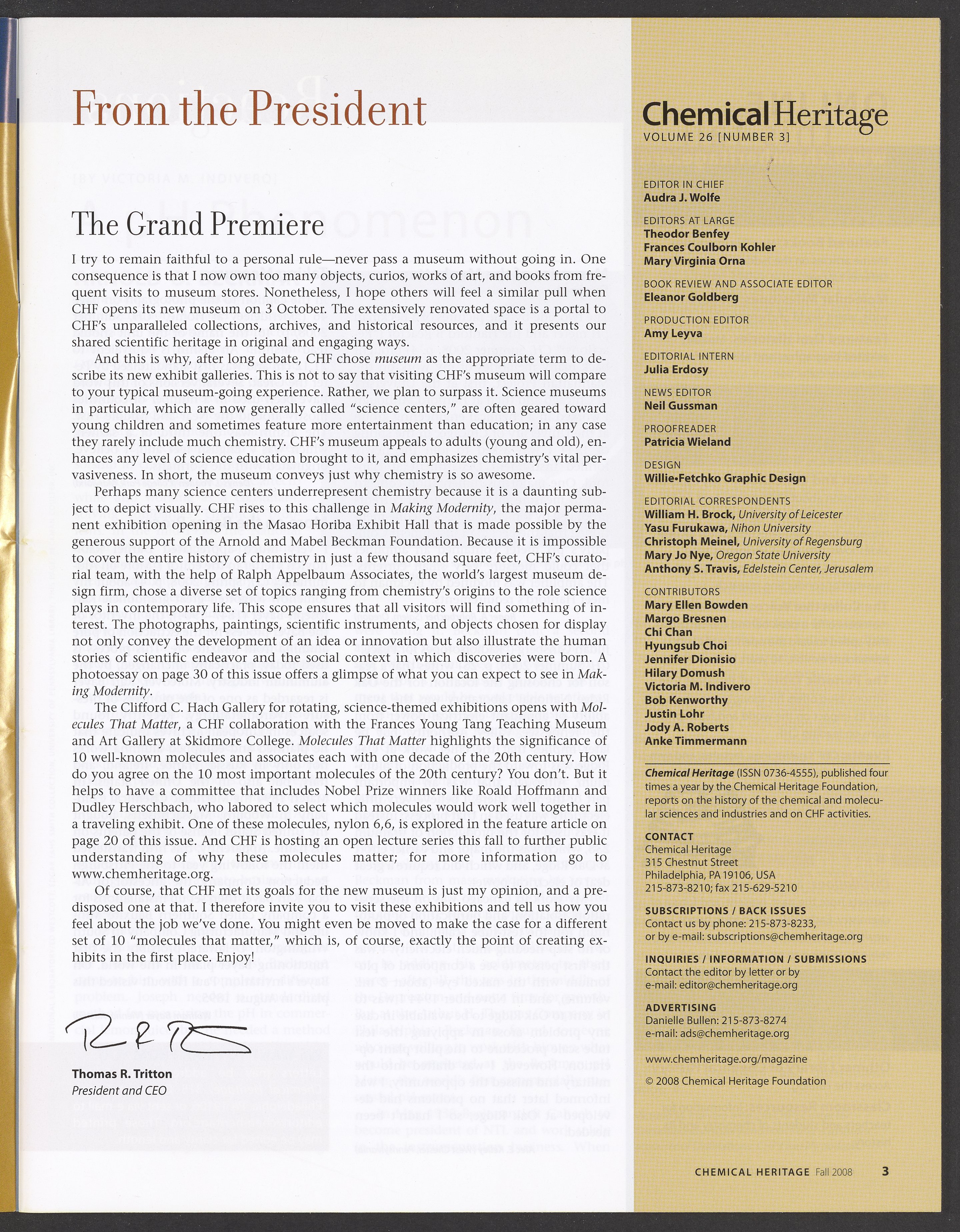 Chemical Heritage, Volume 26 Number 3
