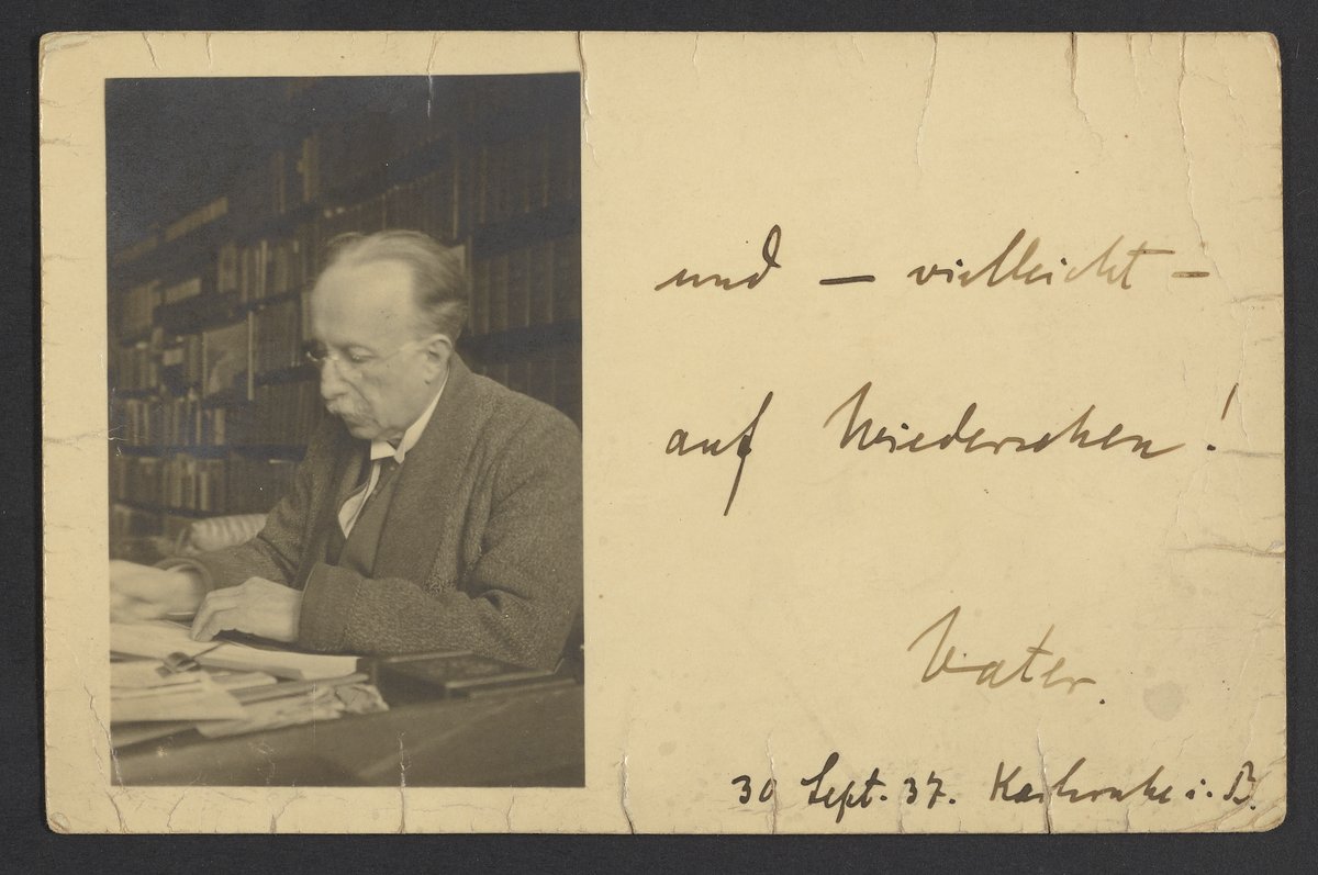 Small JPG1200 x 797px — 132 KBLarge JPG2880 x 1914px — 685 KBFull-sized JPG3434 x 2282px — 945 KBOriginal fileTIFF — 3434 x 2282px — 22.4 MBPostcard from Georg Bredig (1868-1944) to his son, Max Albert Bredig (1902-1977). The postcard features a portrait of Georg reading at his desk.
