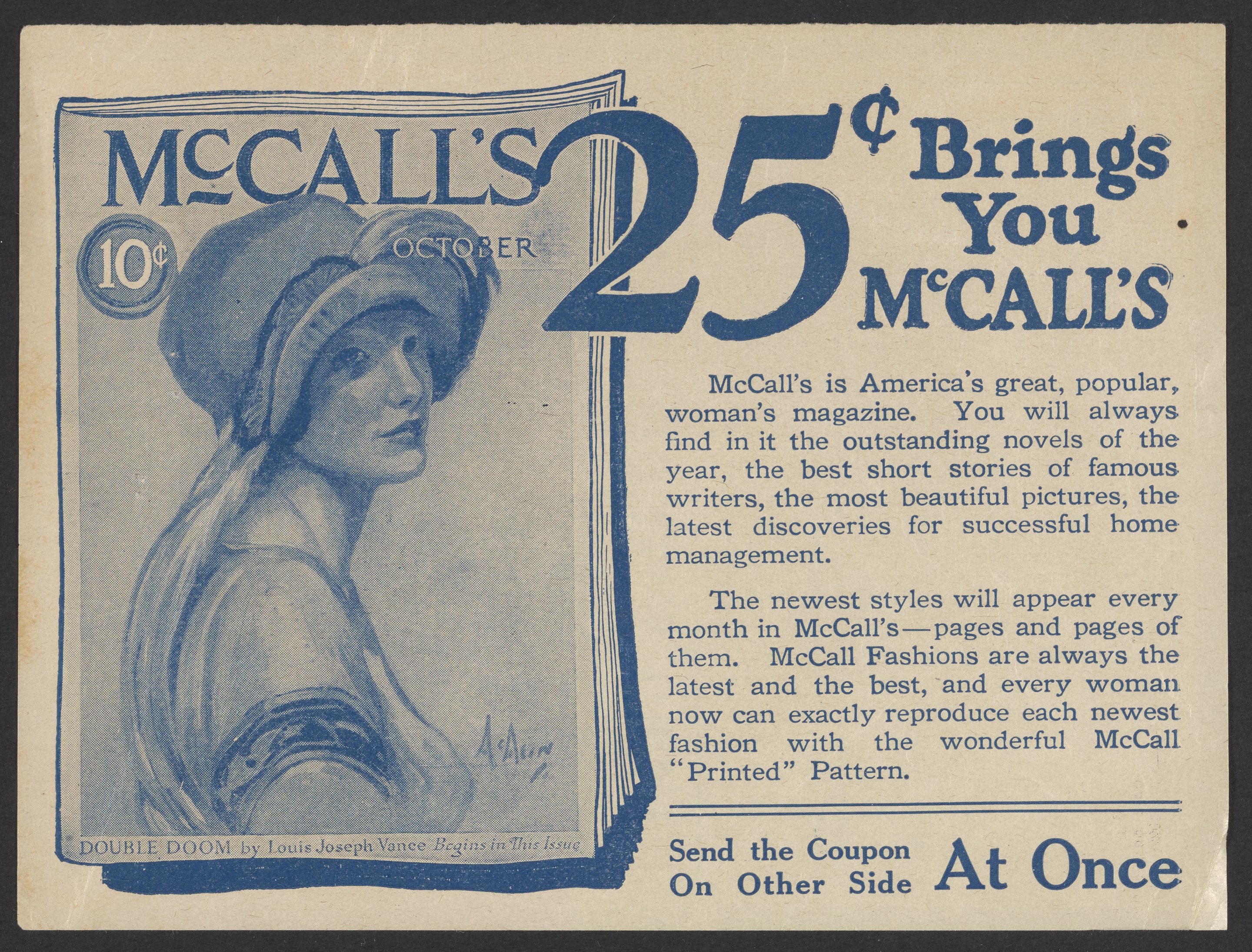 Small JPG1200 x 1659px — 447 KBLarge JPG2880 x 3981px — 2.2 MBFull-sized JPG3452 x 4772px — 3.0 MBOriginal fileTIFF — 3452 x 4772px — 47.1 MBSewing pattern envelope for women's bloomers and subscription card to McCall's magazine.